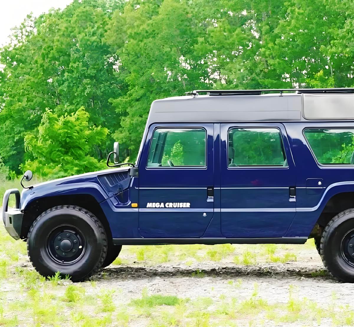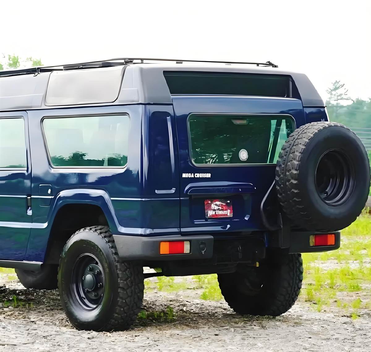 外觀設計上,Mega 巡洋艦盡顯硬派本色:纖維玻璃材質打造的高車頂搭配雙掀蓋設計,兼顧頭部空間與實用性;後方遊艇式車窗增添了幾分獨特質感,前艙配備粗獷的牛欄槓,既能抵禦復雜路況的撞擊,又強化了越野氣場。