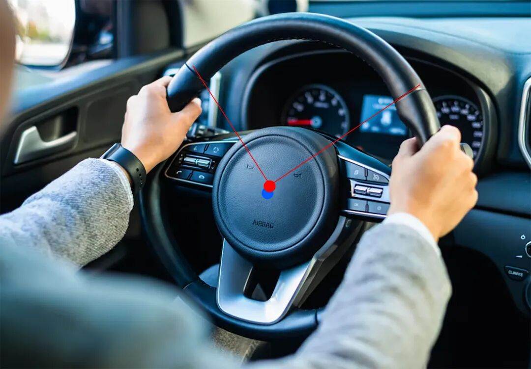 現在幾乎所有家用車的方向盤,其實都是這樣設計的,學名叫做方向盤偏心設計。意思就是方向盤與轉向柱的固定位置,並不是在方向盤的圓心正中央,而是刻意設定在稍微偏下的位置,屬于廠商的標準設計。