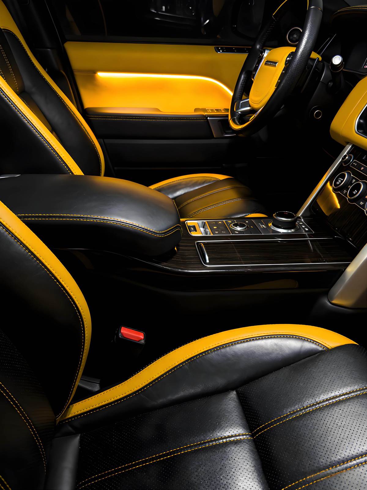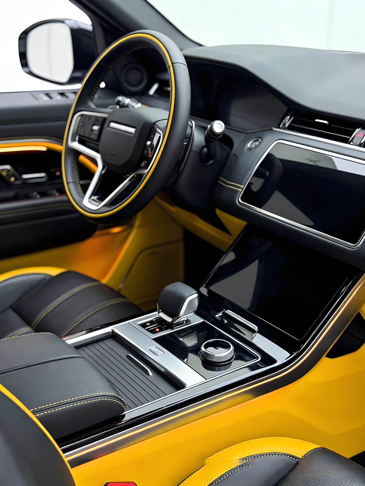 車頭延續家族霸氣方盒輪廓,大面積格柵與銳利 LED 頭燈相互輝映,黃色車身點綴黑色飾板,既保留路虎的沉穩底蘊,又多了年輕化的運動氣息,開上路絕對是全場焦點。