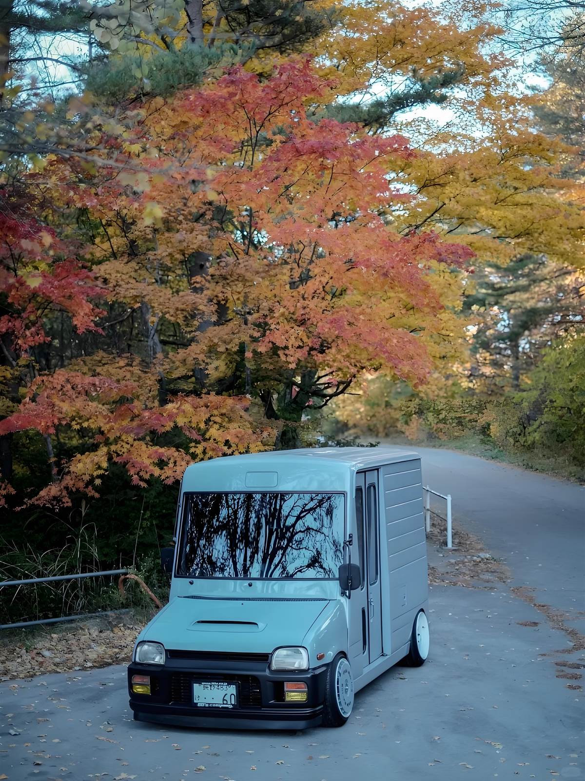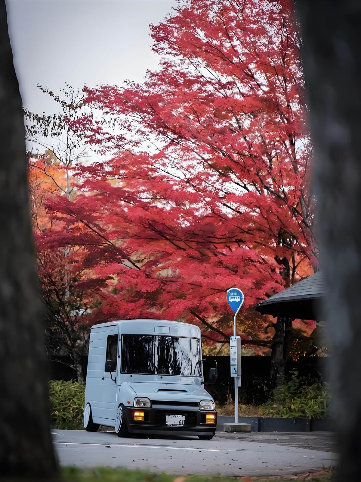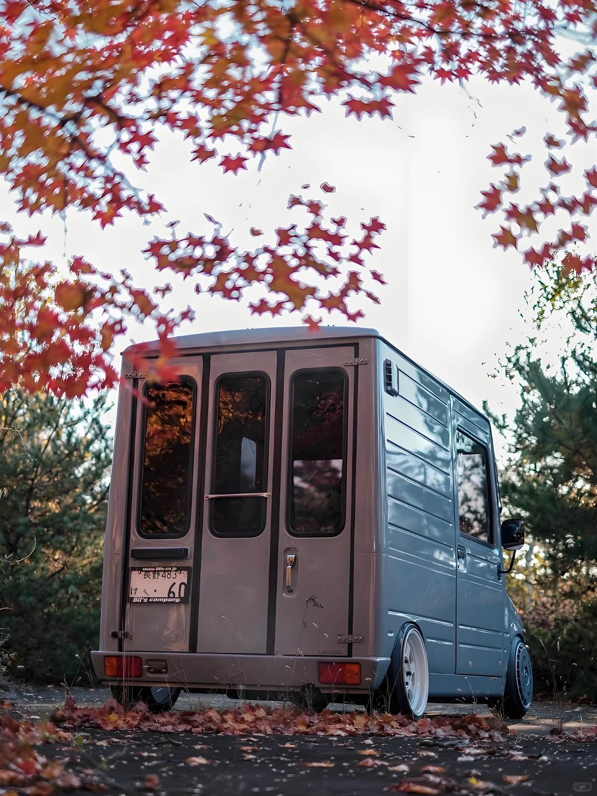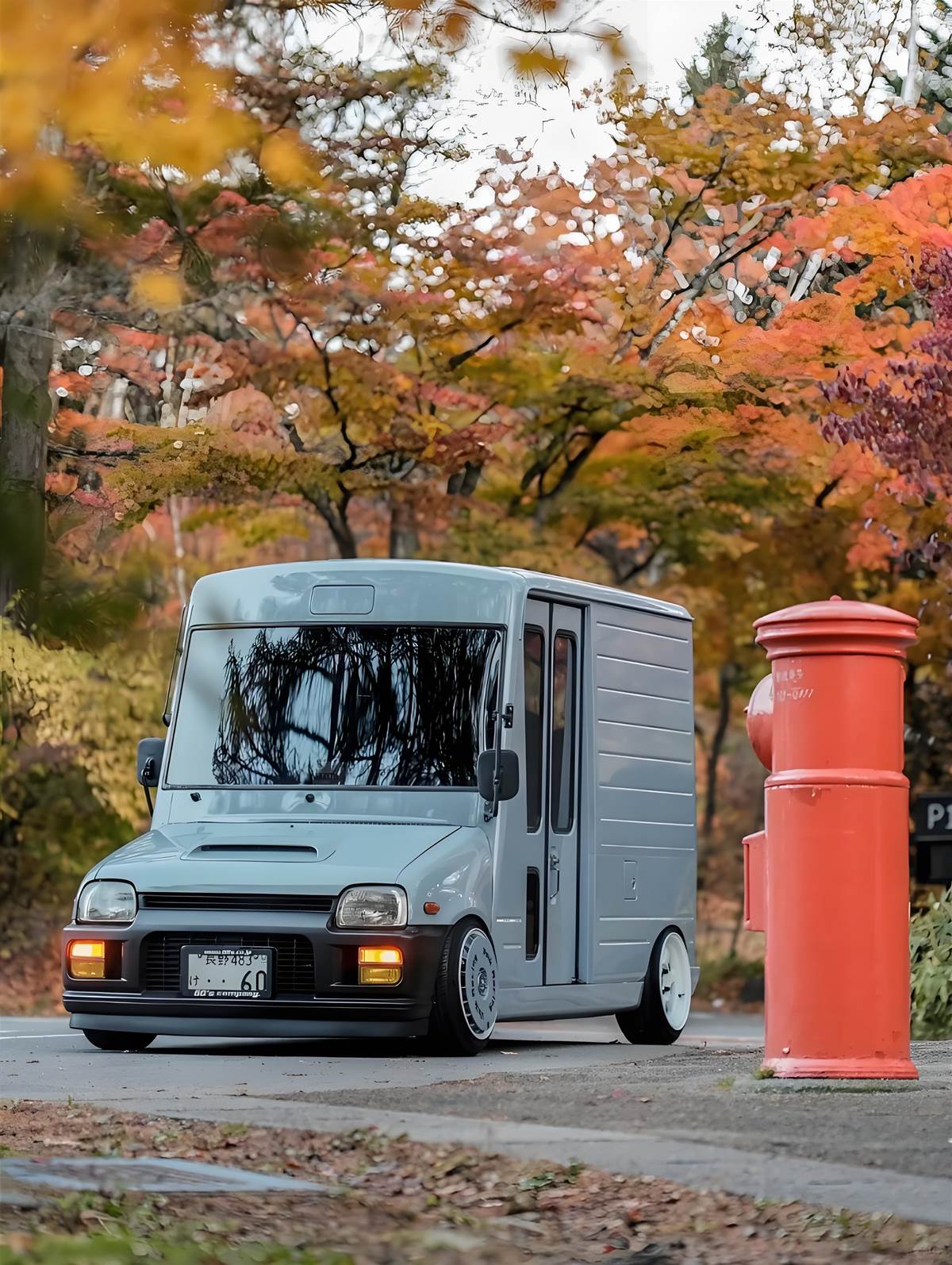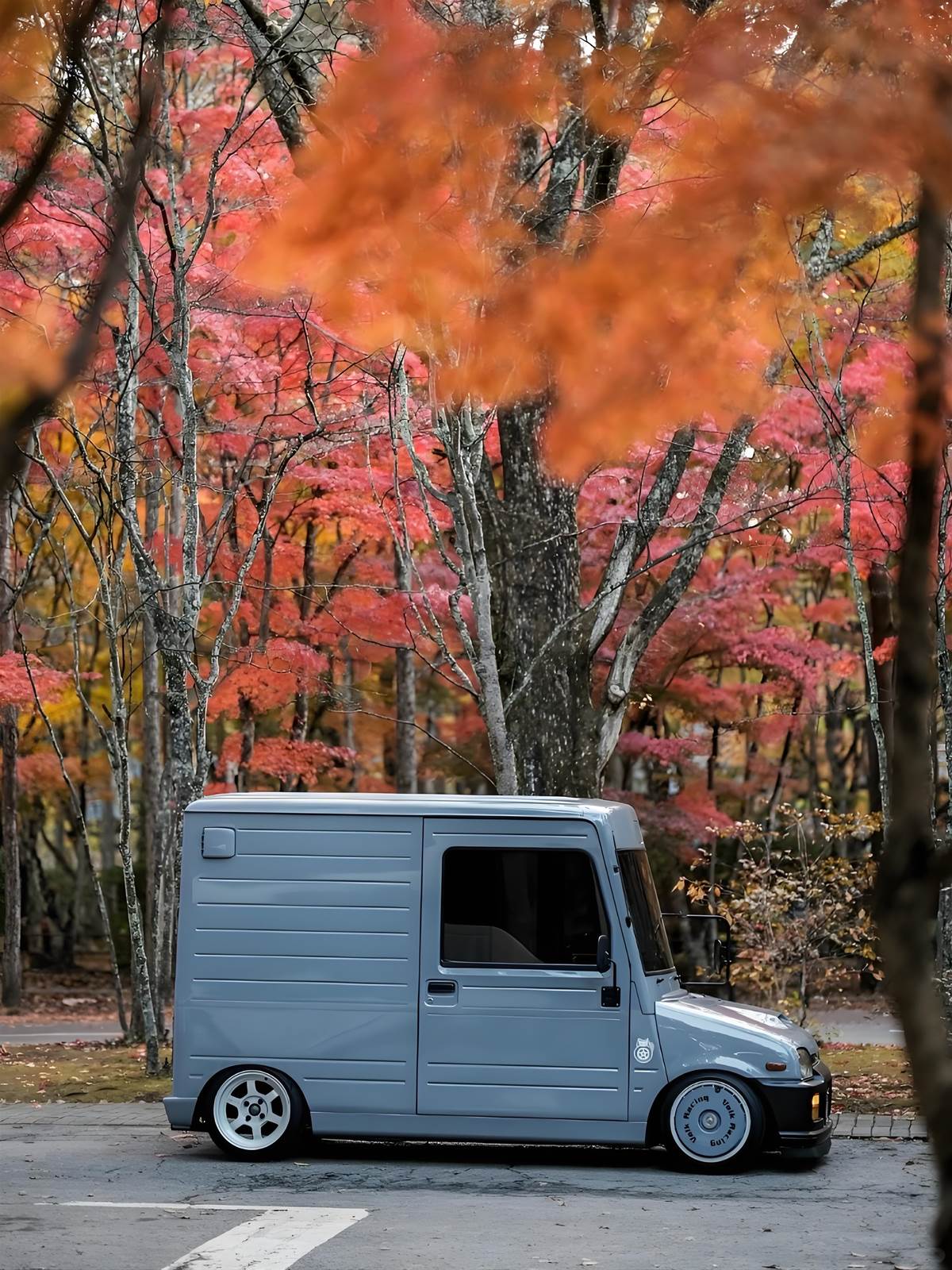 國民小貨變身記:L200 系的經典基底作為台灣街頭常見的 「國民小貨車」,大發 Mira L200 系以輕巧車身、靈活操控圈粉無數,不管是市區通勤還是輕度載貨都得心應手,是許多車友心中的改裝潛力股。這次改裝保留了原車實用的車身結構,卻透過細節升級,讓工具車秒變兼具個性與溫度的潮流座駕,紅葉元素的點綴更讓整車自帶秋日濾鏡,彷彿下一秒就要開進山間童話。