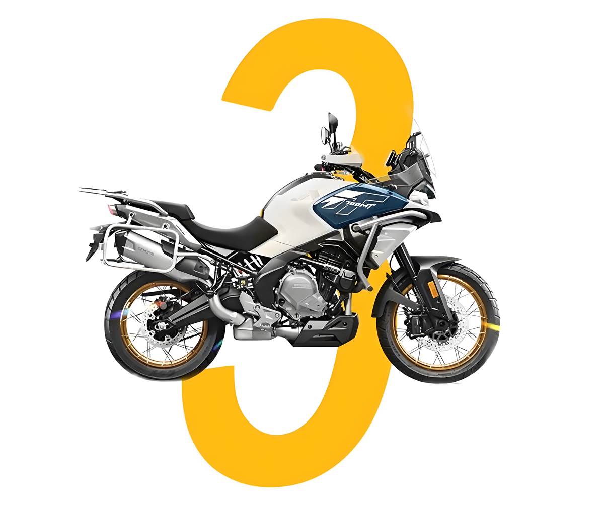 第一名:貝納利TRK552,配置滿配長途旅伴,市場定位精準,以約15-17萬新臺幣的價格,原廠直接搭載三箱、護桿、霧燈、加熱手把與加熱座椅等長途必備配置,出廠即滿配,省去後續改裝麻煩與額外花費。相較老款TRK502,新款加量不漲價,性價比拉滿,穩居人氣冠軍。