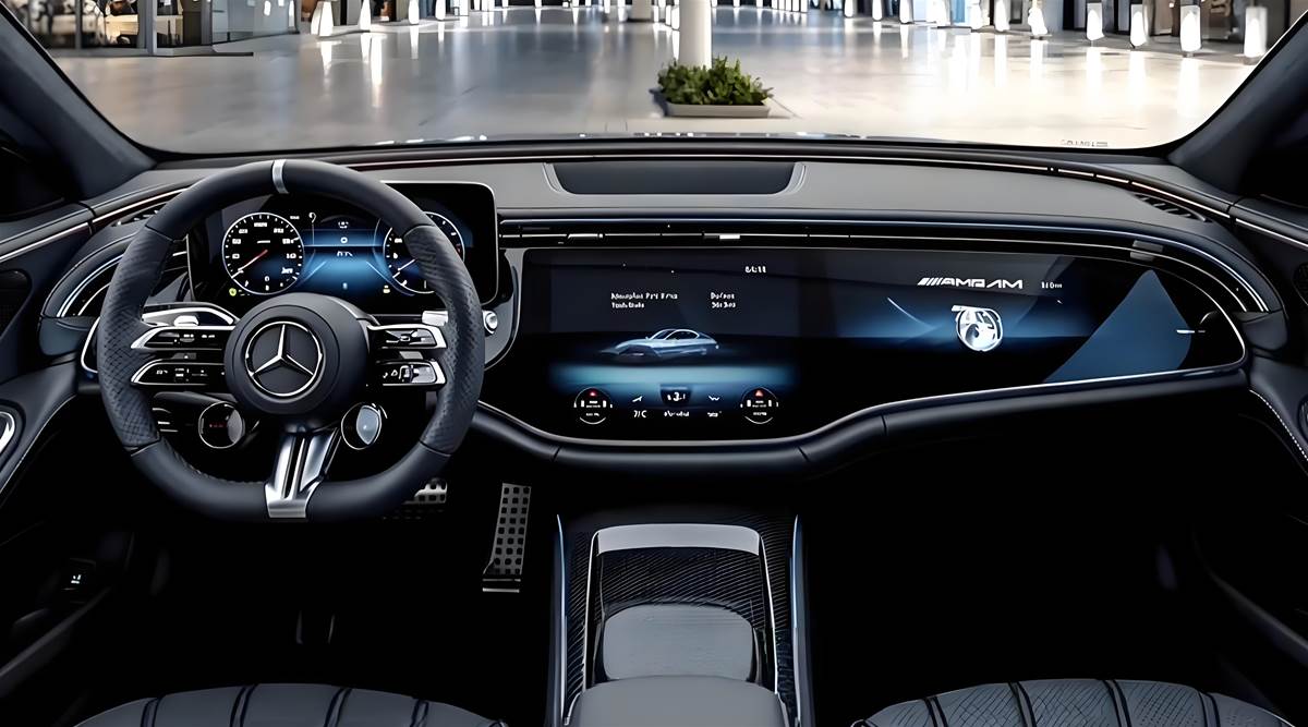 車尾的四出橢圓形排氣尾管與小尺寸擾流尾翼相互呼應,既凸顯性能感,又不失豪華轎車的沉穩格調。整車風阻係數優化至0.25CD,讓高速巡航更平穩,全新暗夜套件可選黑化中網、後視鏡外殼與車窗飾條,進一步強化運動視覺衝擊。走進車艙,全新一代MBUX超聯屏系統率先映入眼簾,14.4吋中控螢幕與12.3吋儀表板組成的曲面一體化設計,科技感滿分。