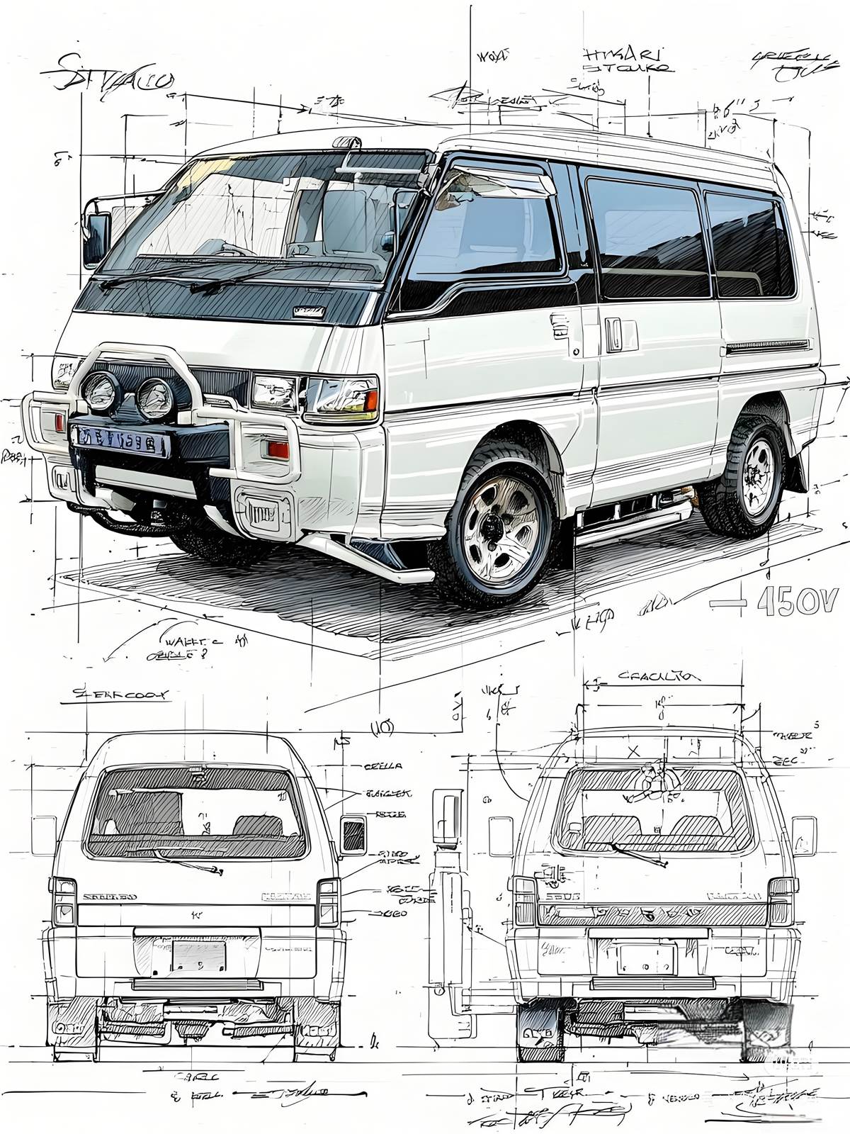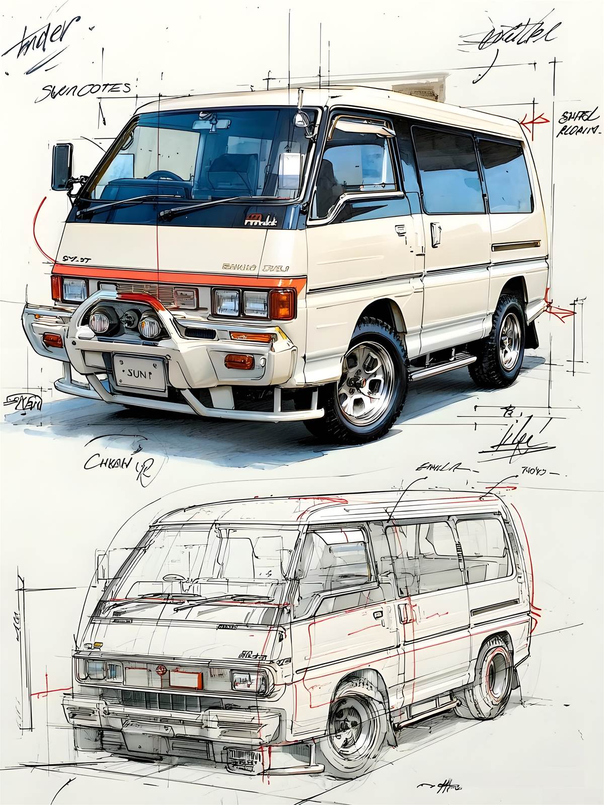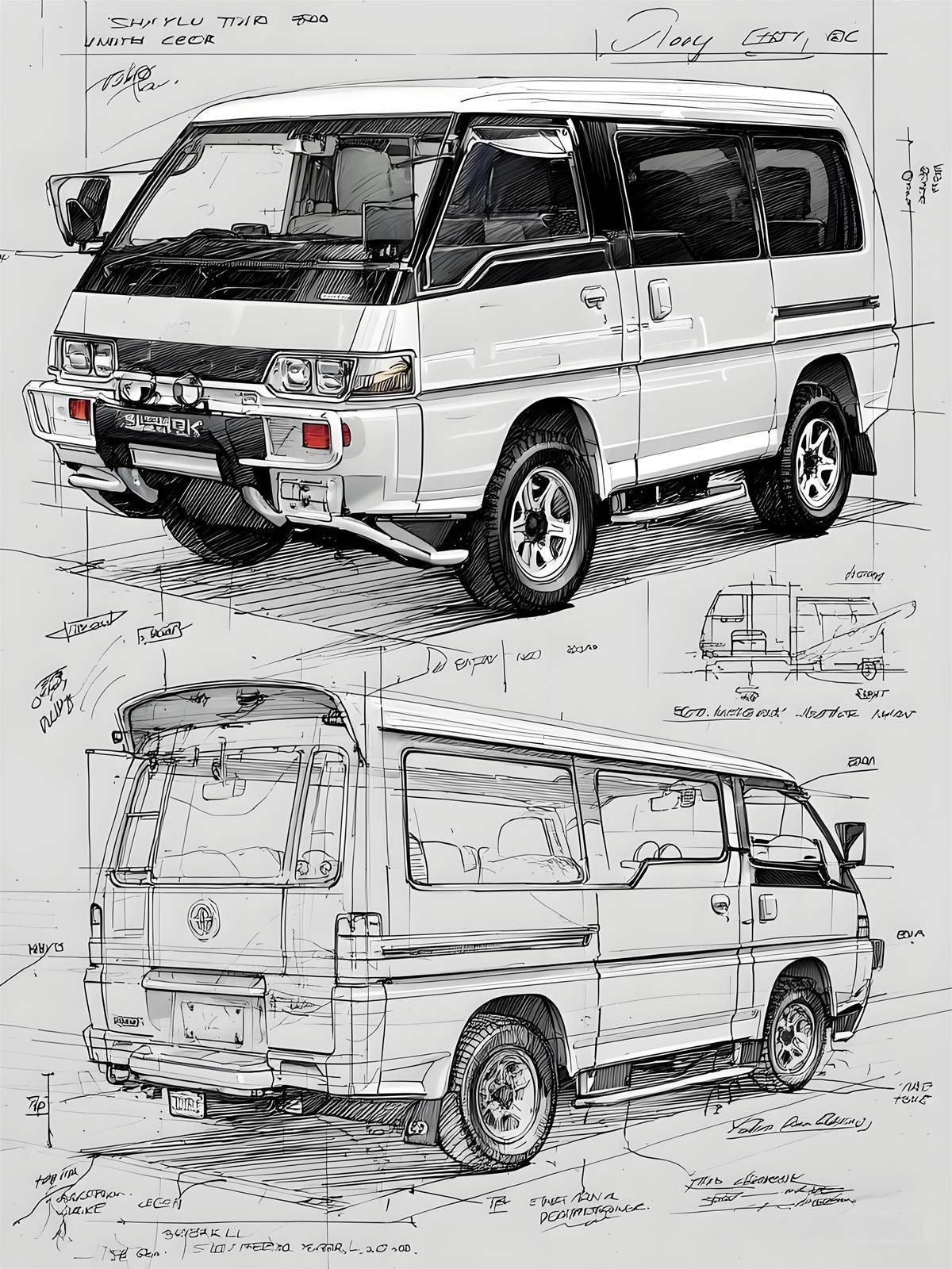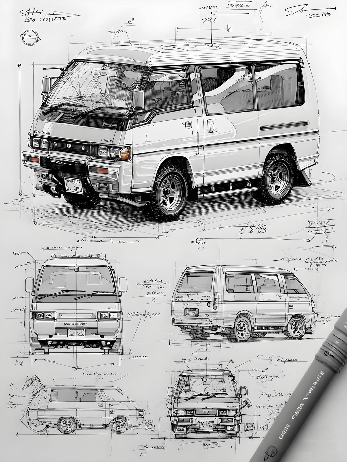 三菱得利卡L300作為Delica系列第三代經典多功能車款,自1986年推出以來,就以強悍越野實力與超高實用性深植人心,即便時至今日,其獨特的線條美感依舊是鉛筆插畫愛好者的經典素材。