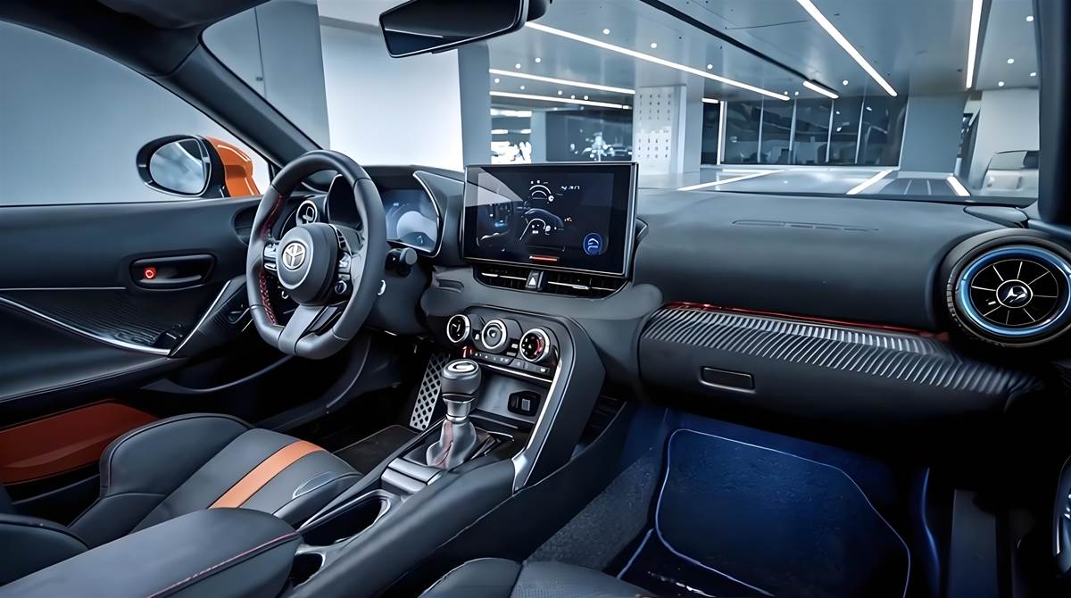 內飾方面,2026款GR86依然堅持以駕駛者為中心的理念。豐田精心調整了駕駛艙佈局,視線更低,方向盤角度更垂直,按鍵分佈更合理。7英寸全液晶儀表刷新率和對比度更高,可根據不同模式呈現專業資訊,10.25英寸中控屏UI簡潔,支援無線CarPlay。