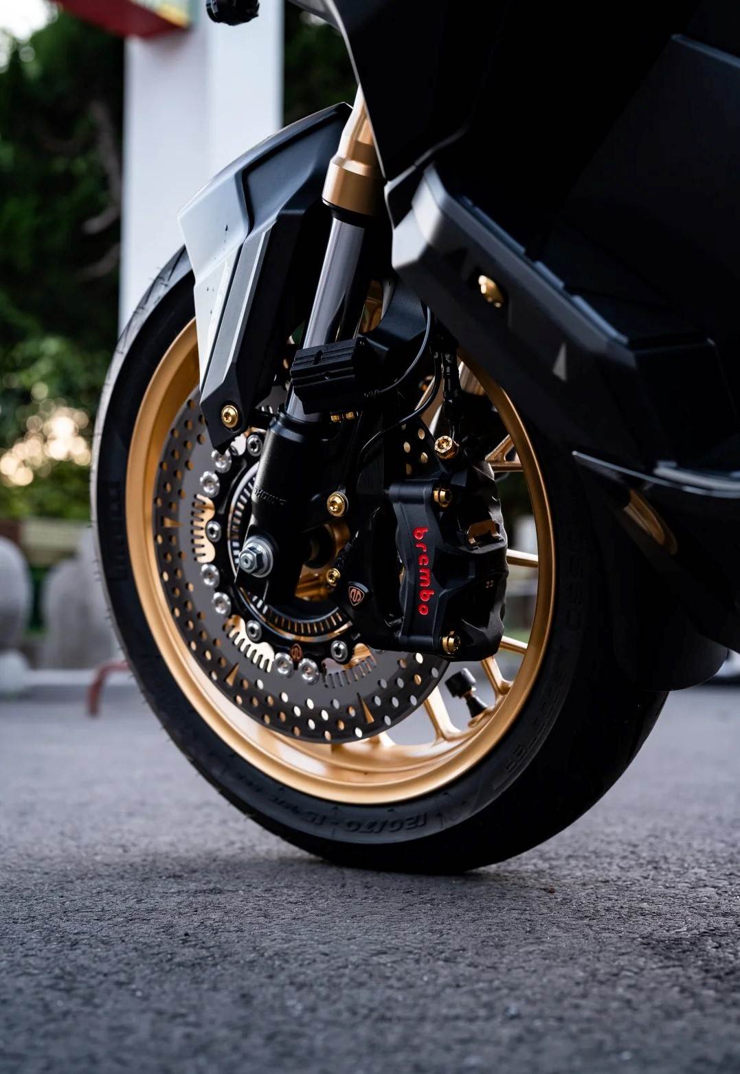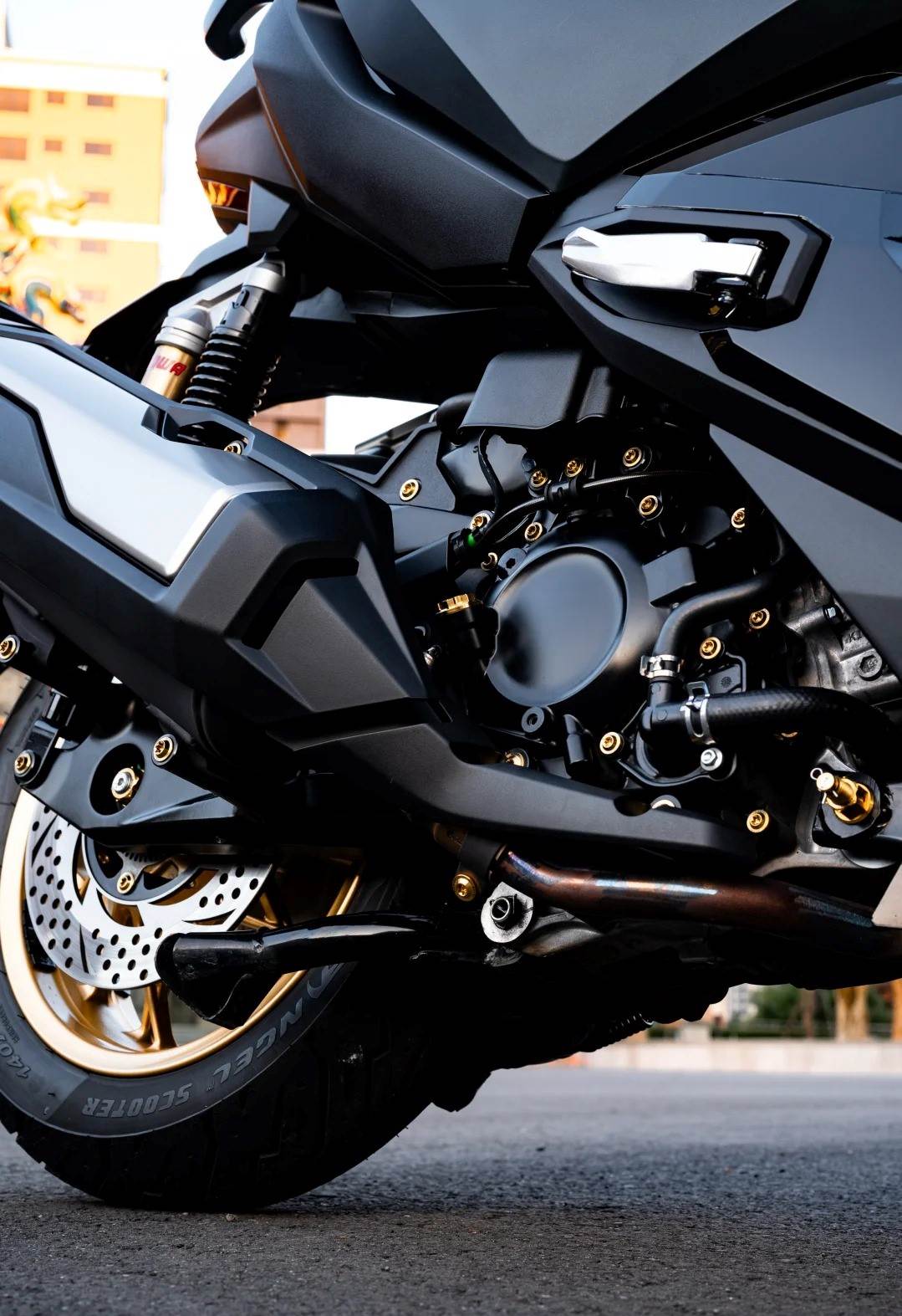 核心動力方面, ADV350 搭載與 FORZA 350同款的 330cc 單缸水冷 eSP + 引擎,最大馬力 29.4 匹(21.6kW)、峰值扭力 31.8Nm,匹配 CVT 無段變速箱,官方極速可達 133km/h,平均油耗約每公升 28 公里,搭配 11.7 公升油箱,續航力輕鬆突破 300 公里,兼顧動力與經濟性。