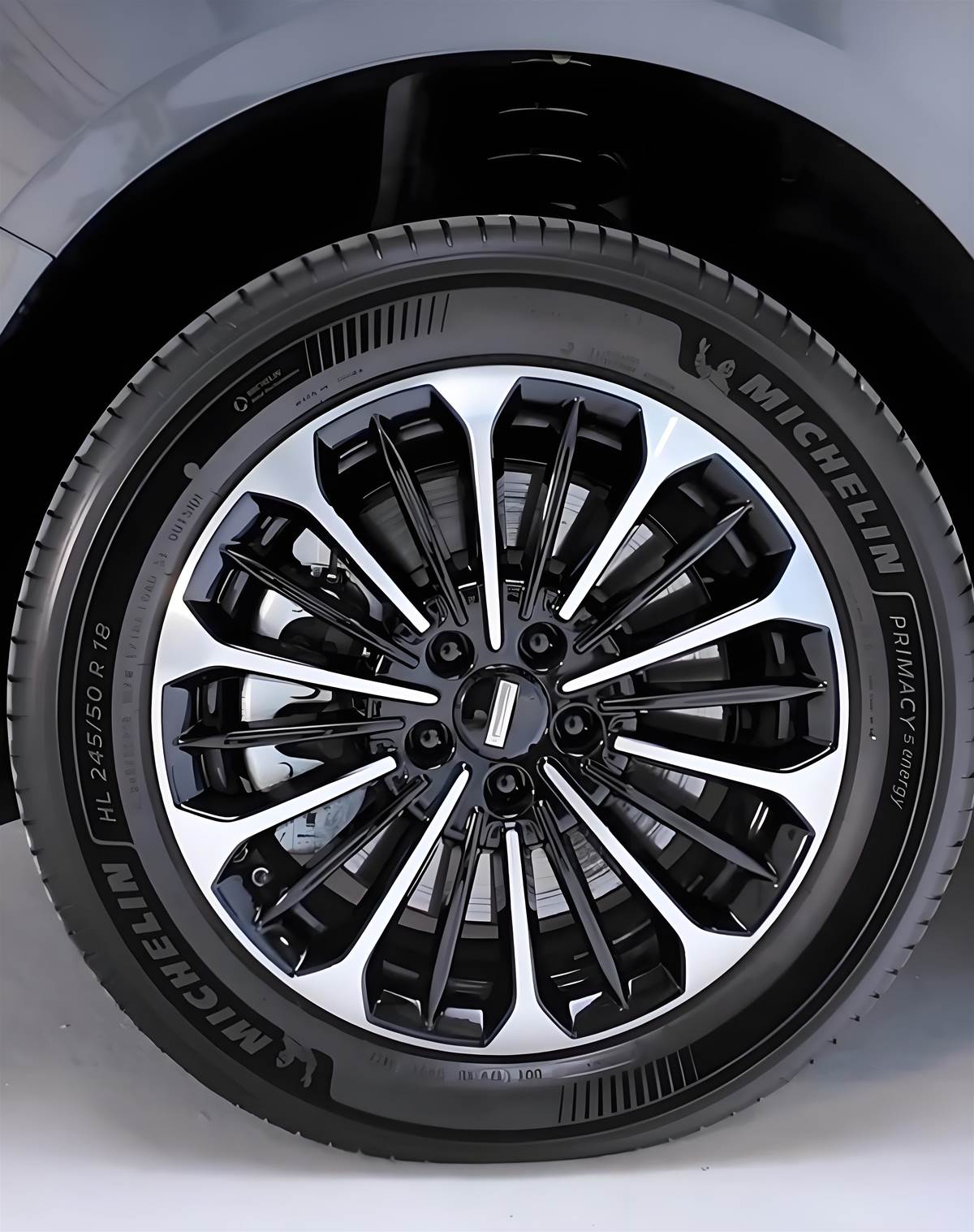車側線條高挺大氣,同樣少不了鍍鉻飾條點綴,輪圈直接給到18寸配置,搭配米其林245/54 R18輪胎,而且輪胎經過專門調教,能兼顧舒適性與操控穩定性。