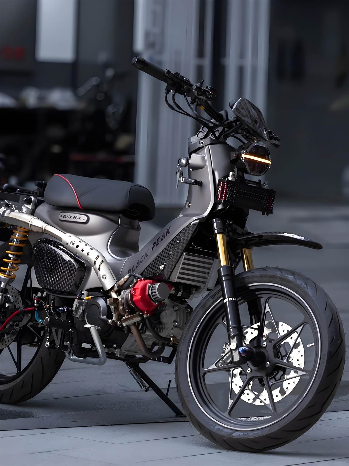 BP WORKS這套渦輪改裝方案,針對幼獸核心車系(Super Cub 110、C125等)量身打造,並未破壞車輛原有復古造型,而是將渦輪增壓系統巧妙整合于車架內側。核心升級包括搭載小型渦輪增壓器、升級高流量節氣門、更換強化活塞與連桿,同時匹配ECU電腦程式最佳化,確保動力輸出平順且可靠。經改裝後,原廠110cc/125cc單缸引擎的動力大幅躍升,最大馬力從原本的8-10匹提升至18-22匹,峰值扭力也同步提升約60%,無論是市區超車還是山路行駛,都能帶來截然不同的駕駛體驗。