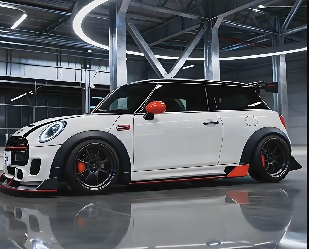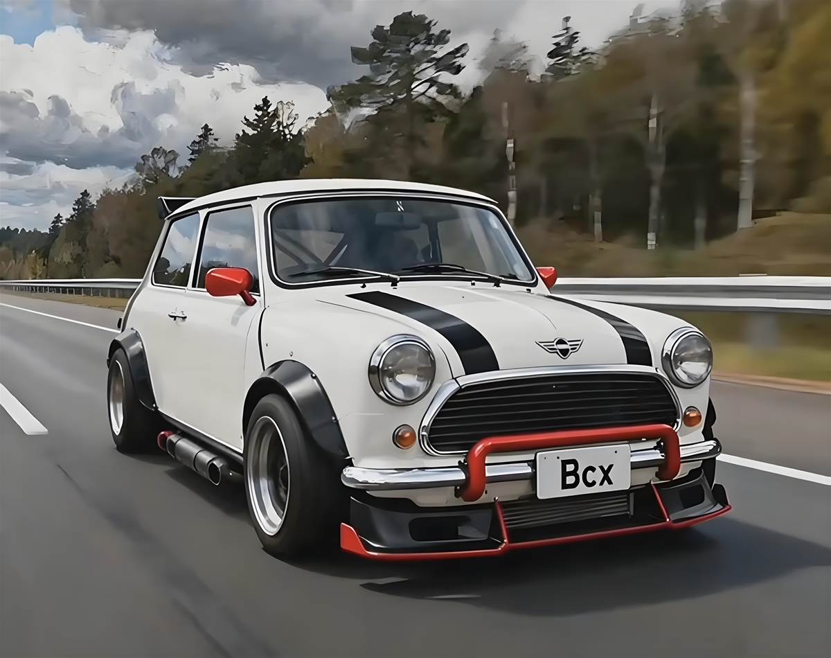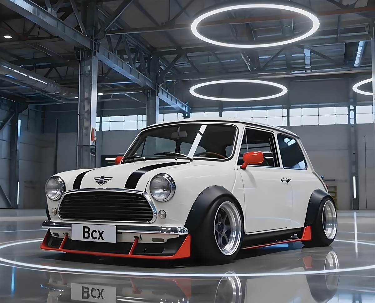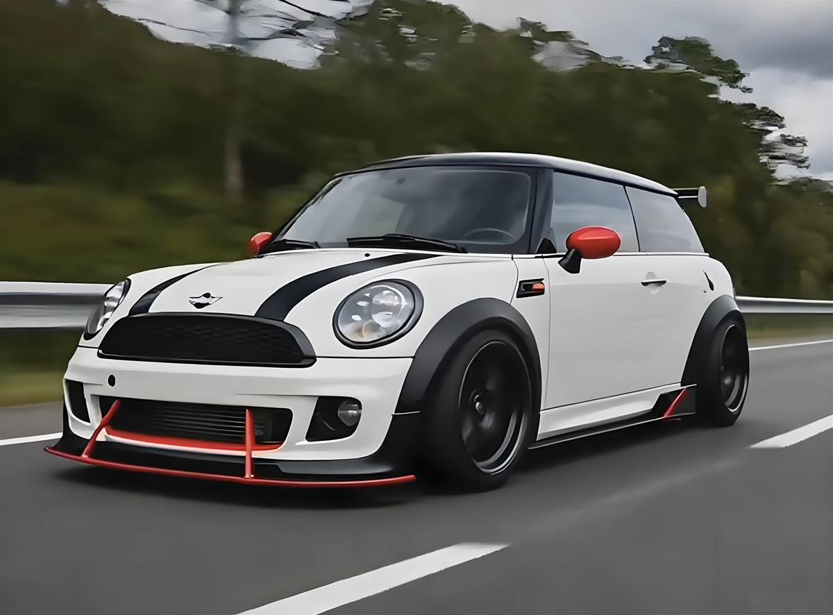 誰能拒絕一臺改得又萌又兇的經典Mini啊!這臺老款Mini被注入了賽道魂,白車身搭配黑條紋和紅色細節點綴,視覺衝擊力直接拉滿。