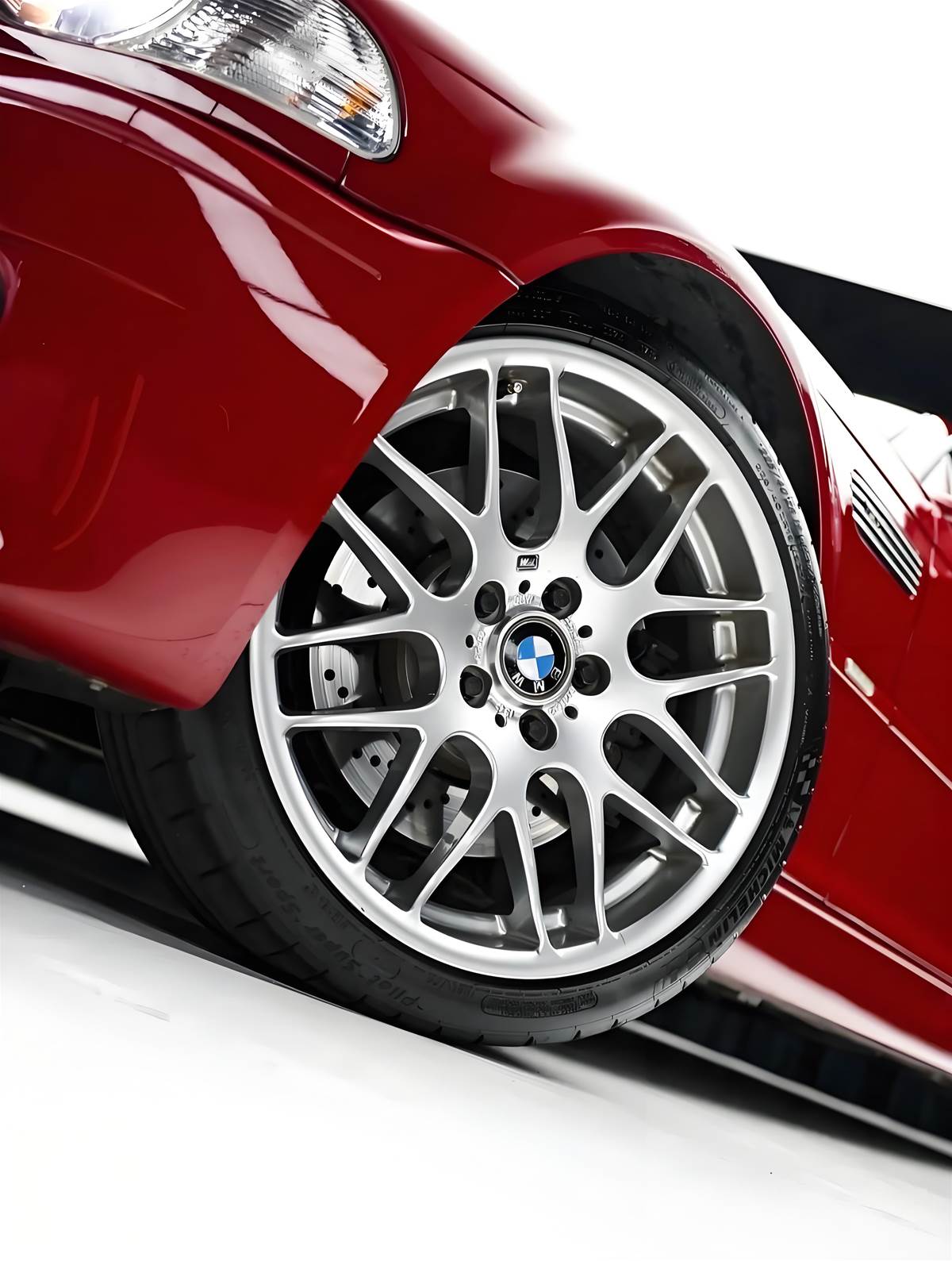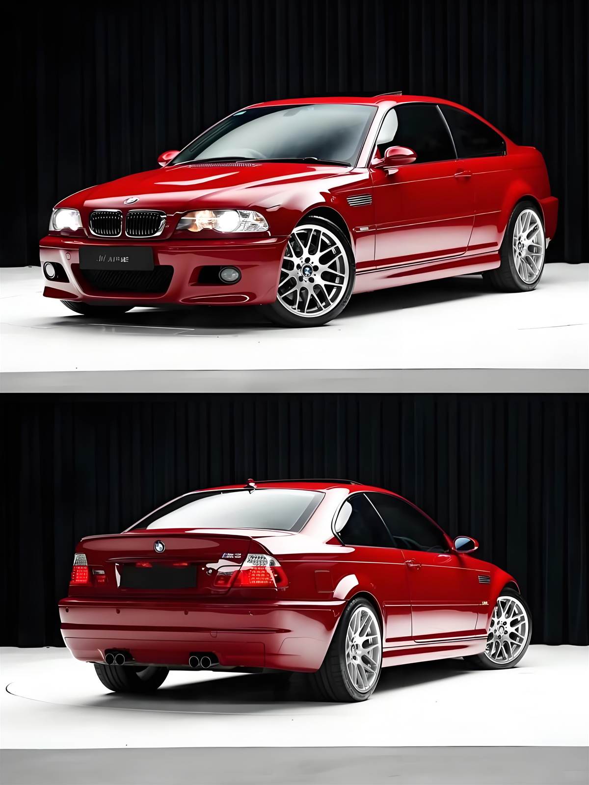 外觀延續 E46 車系經典線條,寬體套件搭配 M Power 專屬鋁圈,流線車身毫無贅飾,運動氣息純粹又強烈。