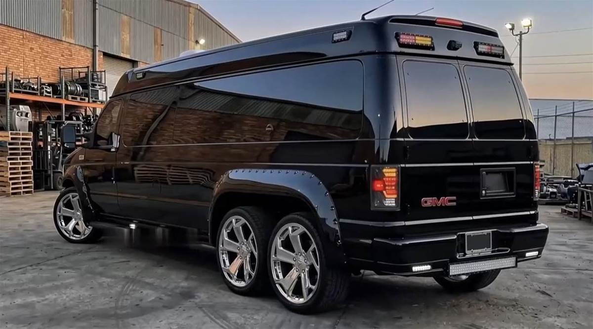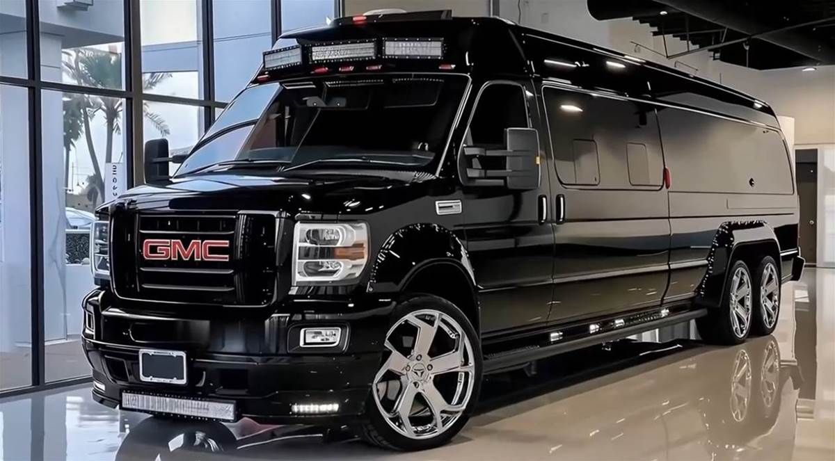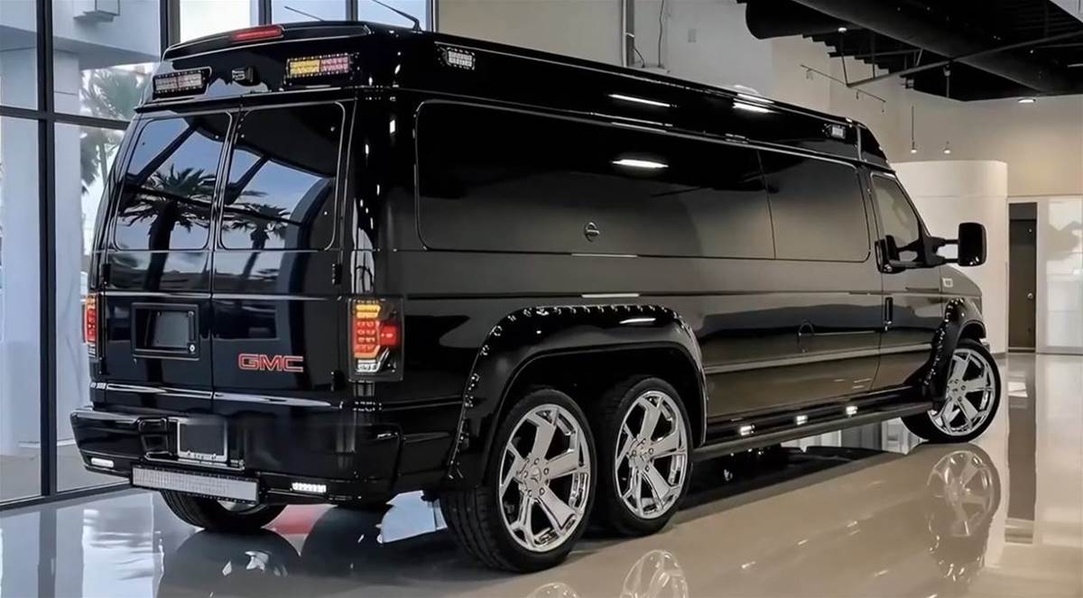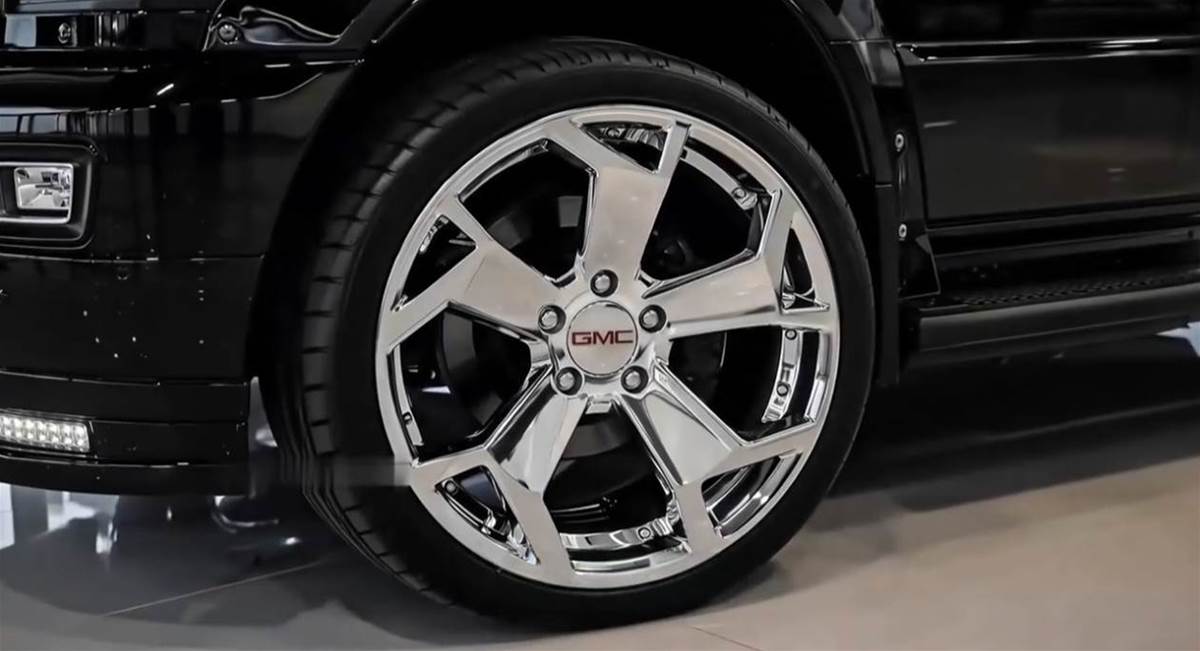 車身側面的加長設計是最大亮點,超長軸距搭配雙後輪佈局,既提升了行駛穩定性,也為內部空間打下了基礎。定製的鍍鉻多輻輪轂質感十足,中心的 GMC 標識時刻彰顯身份,搭配車頂的 LED 射燈組,不管是城市商務還是戶外出行,都能 hold 住場面。