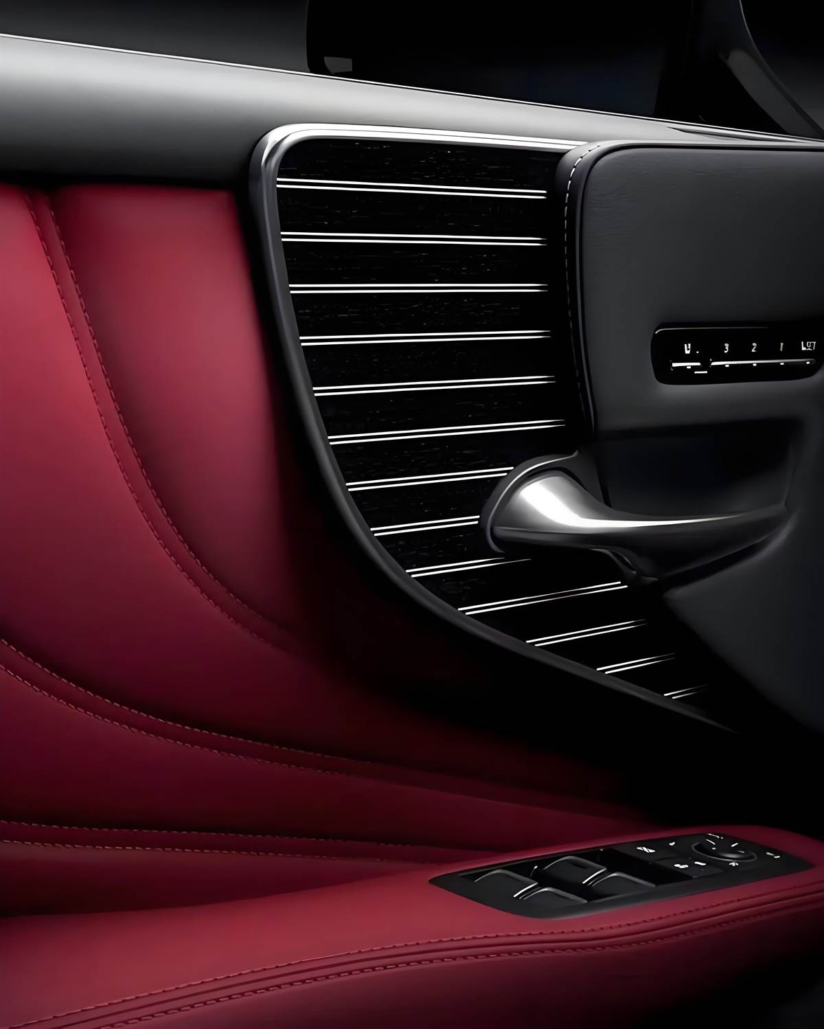 內裝則以「里奧哈紅」高級皮革鋪陳,搭配雷射雕刻黑色高級木紋飾板,中控台鑲嵌專屬「LS Heritage Edition」鐫刻徽章,每一處細節都彰顯限量身份。