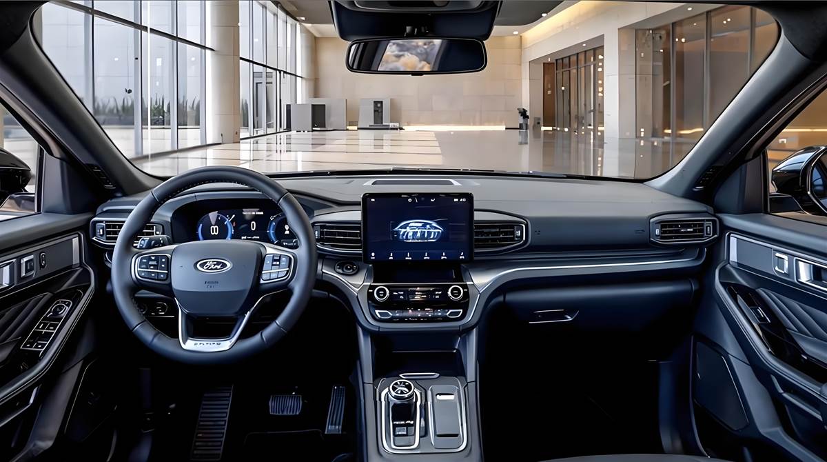 內飾方面,福特在內飾豪華化上投入更大。中央搭載全新的15.5英寸縱置中控顯示屏,配備最新一代智慧車機系統,支援5G網路等功能。12.3英寸全液晶儀表盤介面簡潔現代,可根據駕駛模式切換顯示風格。中控區域採用懸浮式設計,下方保留實體旋鈕與金屬質感按鍵。