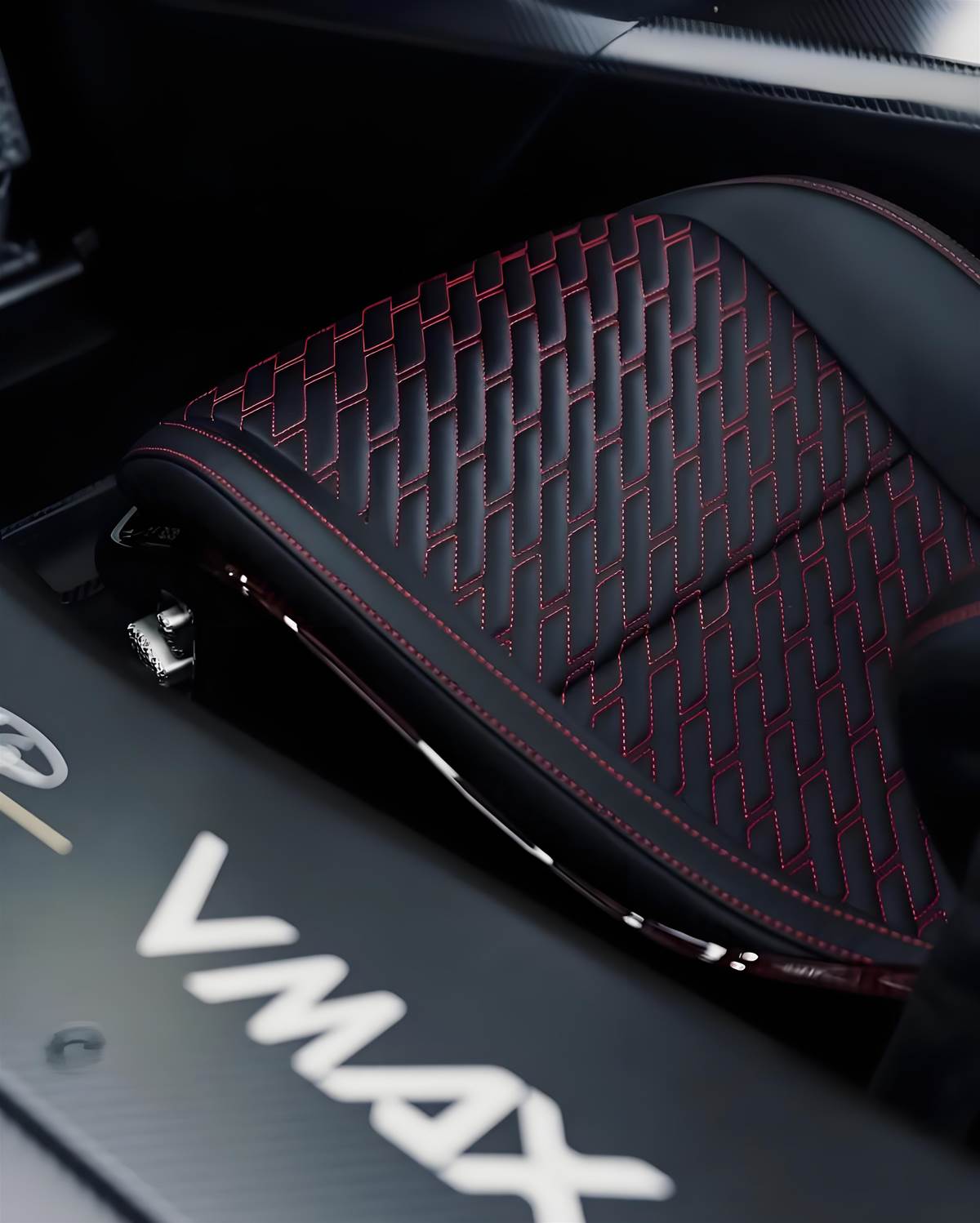 作為標準版 21C 的長尾升級款,V MAX 版本完全為極限直線效能而生,堪稱「直線加速機器人」。車廠透過 AI 流體力學模擬與 3D 列印鈦合金零件技術,將空氣力學效率推向極致:加長的車尾擴散器、可變角度的主動式尾翼,搭配車身兩側的通風導流溝,在 250km/h 時能產生高達 2500kg 的下壓力,確保直線狂飆時的穩定性。