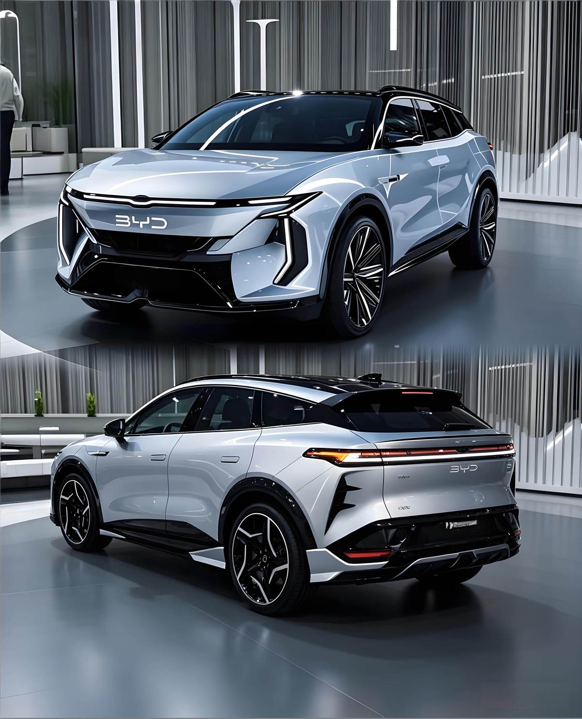 今天就帶大家好好品鑑下這組渲染圖,最明顯的變化就是外觀,跟現款比簡直判若兩車!以前的海豚走呆萌可愛路線,這次直接升級成未來感拉滿的運動風格,氣場一下子就上來了。車頭貫穿式LED燈帶,搭配稜角分明的燈組,點亮後科技感十足;封閉式前臉簡約大氣,完全符合現在新能源車型的潮流,看著就很精緻。