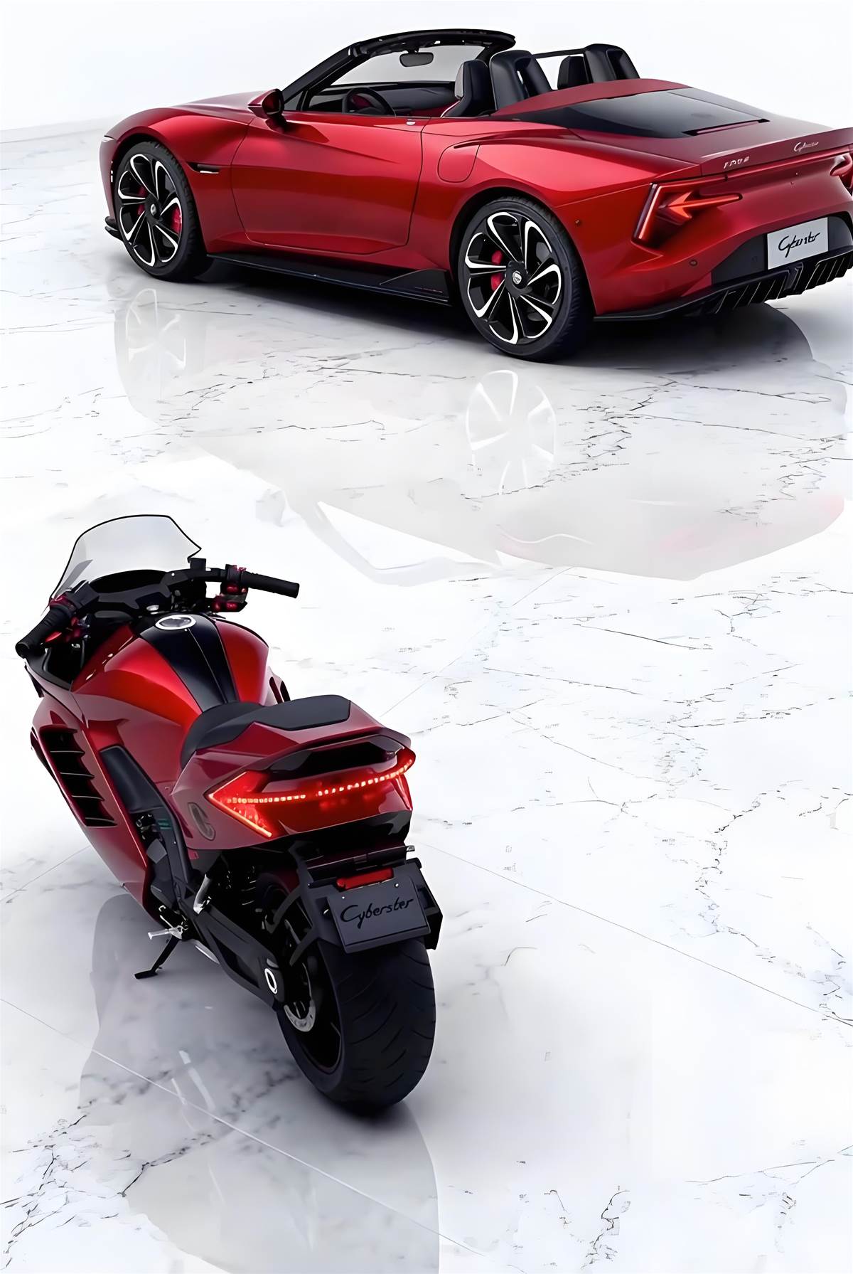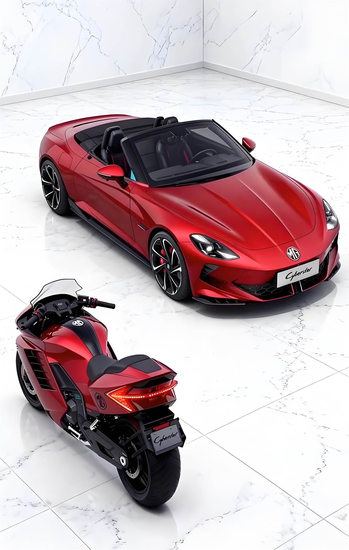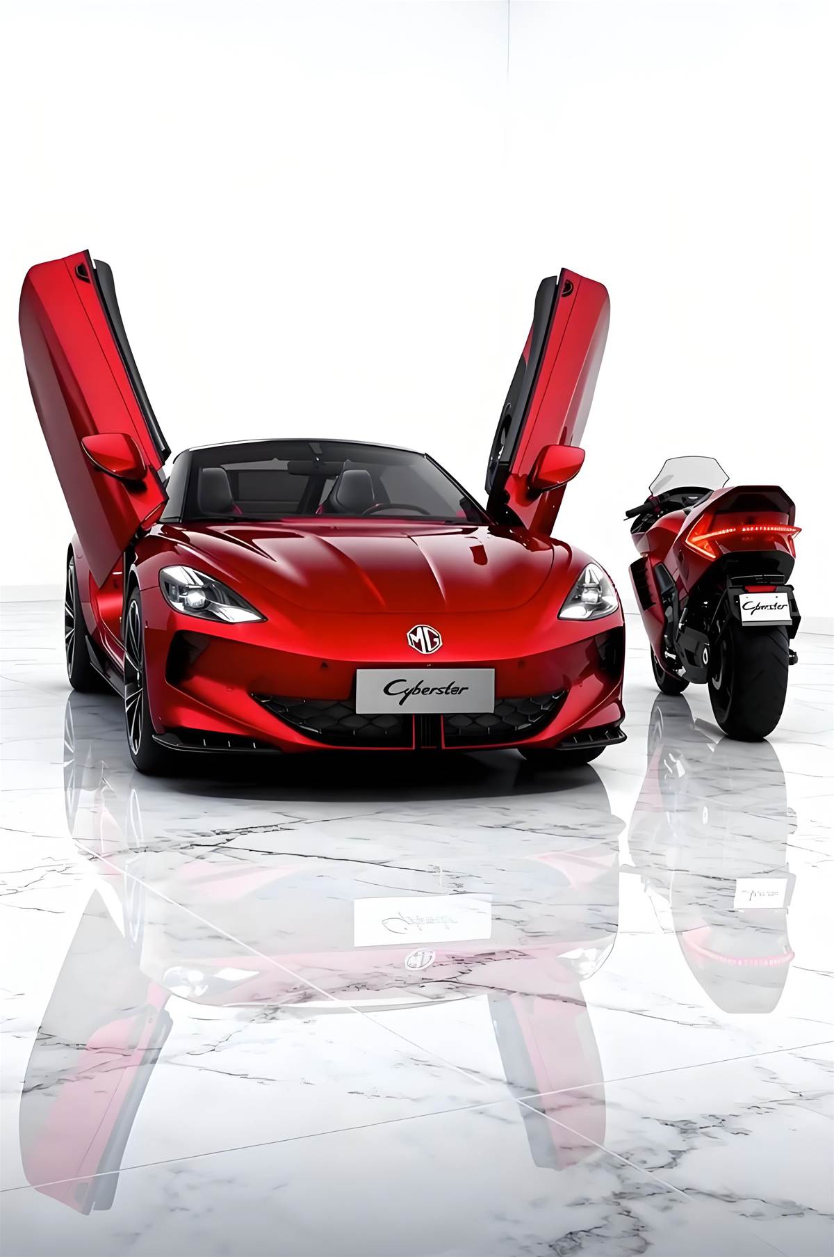MG打造的「性能潮玩組合」驚喜亮相!電動跑車搭配紅色電摩的吸睛組合,讓熱血車迷與潮流玩家雙重瘋狂,成為街頭最亮眼的移動風景。