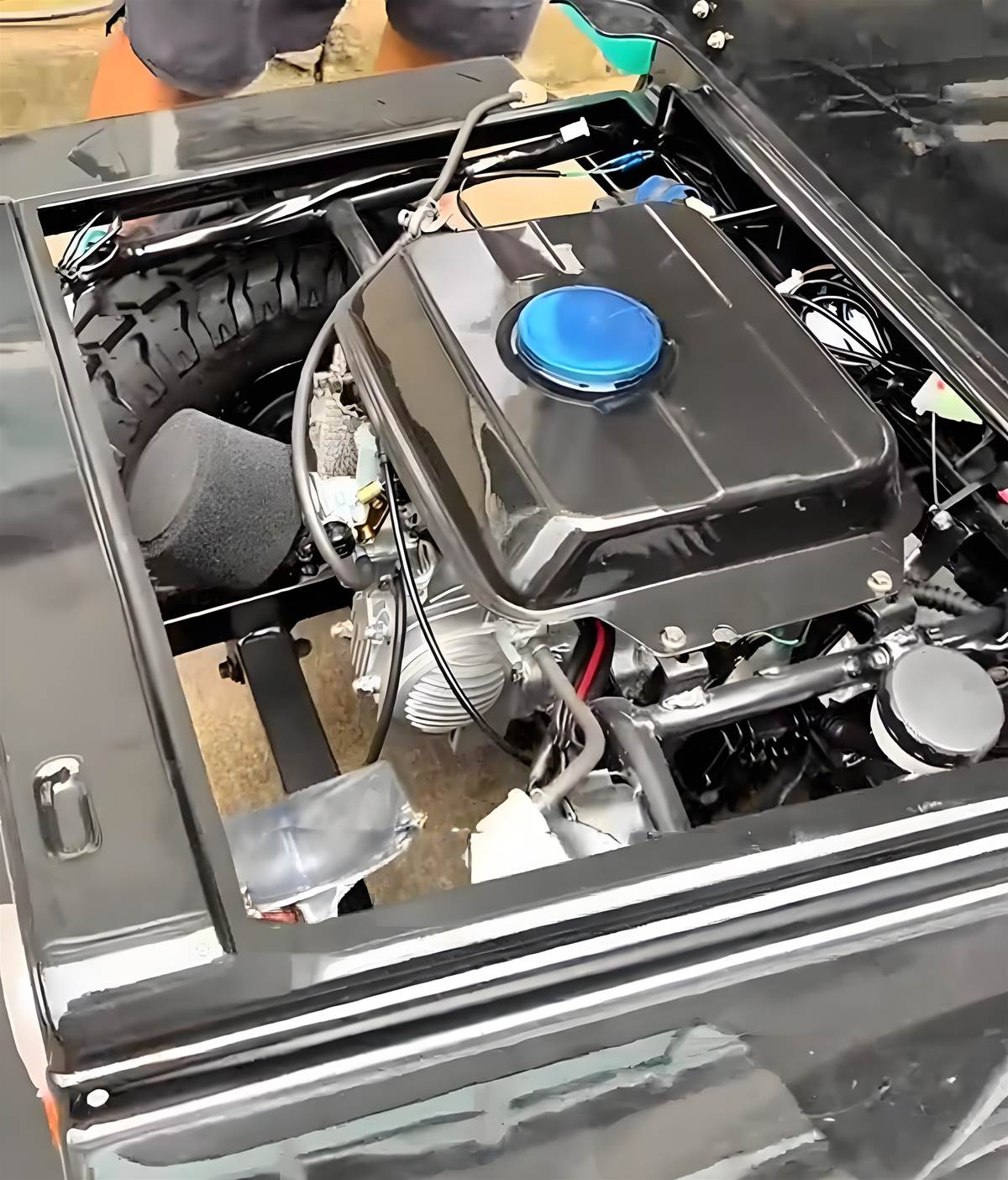 搭載150CC汽油引擎,引擎與油箱皆採前置設計,行駛穩定性拉滿~ 車身尺碼相當靈活,全長200cm、車寬100cm、車高90cm,狹窄路段也能輕鬆穿梭。