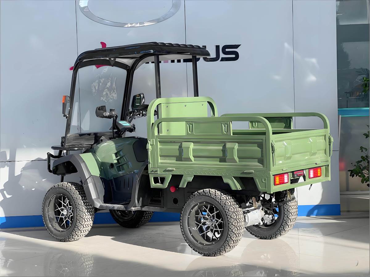 電力配置上,車型搭載60V52AH大容量電池組,這一規格不僅確保長續航里程,應對日常農產品運輸、工具攜帶等需求綽綽有餘,減少頻繁充電的麻煩。輪胎規格設定為直徑58cm,寬大的輪胎接地面積提升了惡劣路況的通過性,無論是泥濘田間還是碎石路段,都能減少打滑風險,保障行駛穩定性。