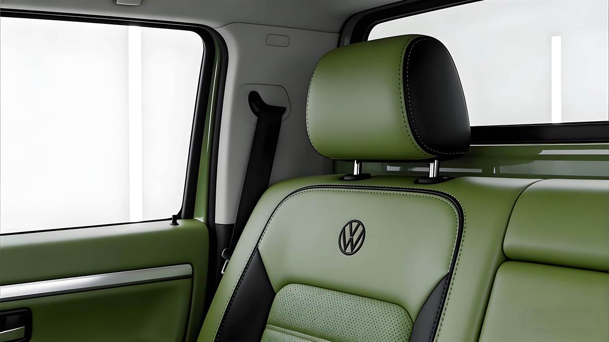 內裝延續福斯家族的質感設計,綠黑雙色真皮座椅搭配精緻縫線,中央大尺寸多媒體主機與機械式空調旋鈕,兼顧科技感與操作便利性,讓長時間駕駛也能享有舒適體驗。