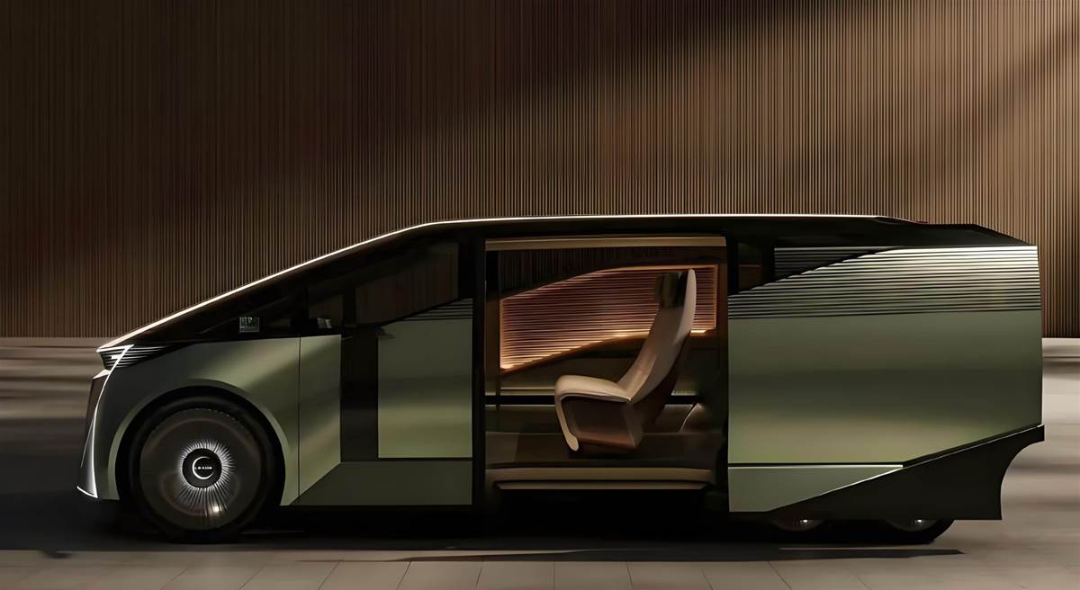 前臉仍有紡錘形格柵,但比例更誇張,大燈細如細線。整車視覺重心偏低,尾部設計厚重,帶有未來豪華房車感,六輪佈局尤其後兩軸四輪格外吸睛,遠看宛如太空穿梭艙。
