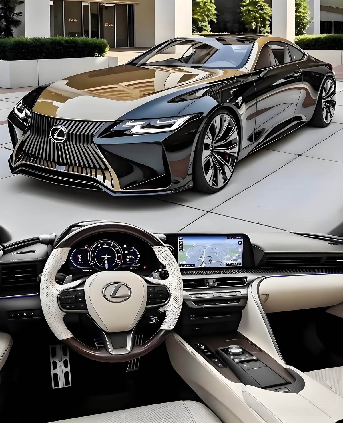 這組凌志(Lexus)旗艦雙門跑車渲染圖,以黑金雙色撞色設計,完美演繹日式奢華與效能跑格,視覺衝擊力十足。