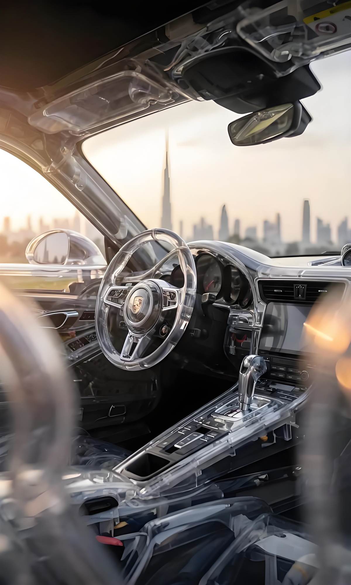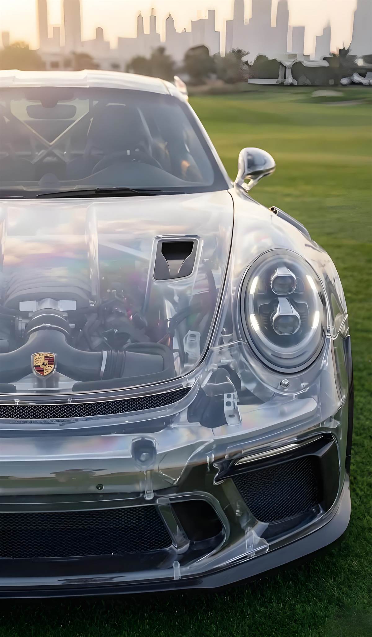 透明引擎蓋套件(透明車殼套件)關鍵資訊 市場供應:分為原廠客製化套件與國外改裝品牌兩種選擇。原廠透過 Porsche Exclusive Manufaktur 訂製,採用 2x2 預浸碳纖維材質搭配 UV 防護透明塗層,與原廠引擎蓋安裝點完全對應,無需修改車身結構。