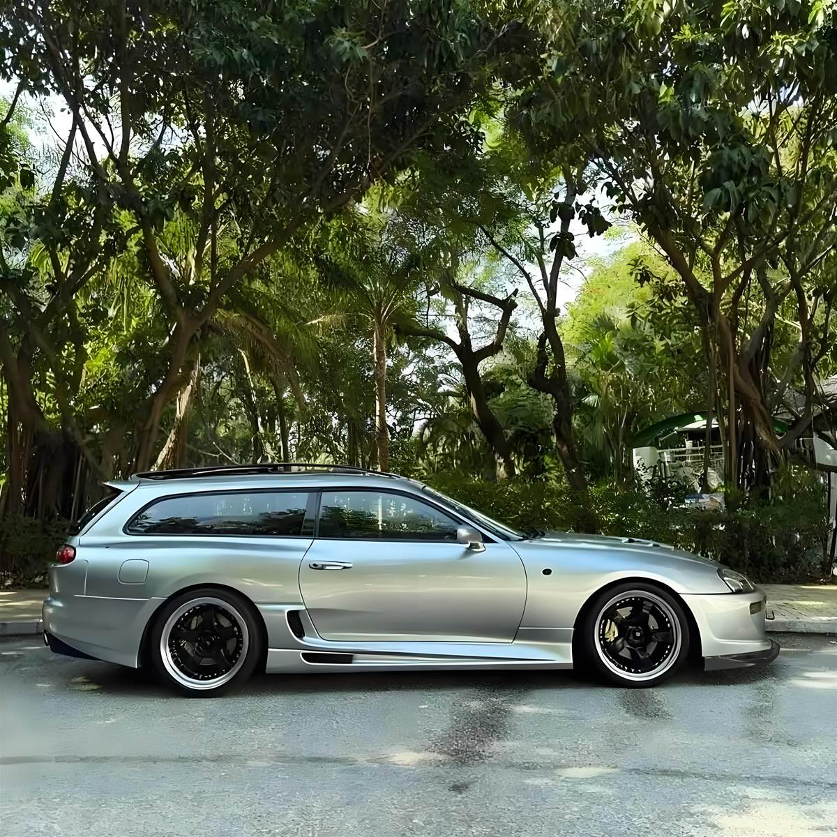 這款特式車款于90年代正式開發,當初研發初衷,就是要融合日系在地市場的熱血效能,以及歐洲市場看重的實用機能,打造獨一無二的跨界效能車。目前業界公認此車型僅存兩輛,一輛為銀色車身,另一輛則是質感滿分的午夜藍塗裝,極低的存世量加上獨特的開發定位,讓這臺JZA81 Supra Shooting Brake不僅是JDM神車,更是收藏級別的稀有珍品,也是車迷口中可遇不可求的牛魔王絕版樣式。