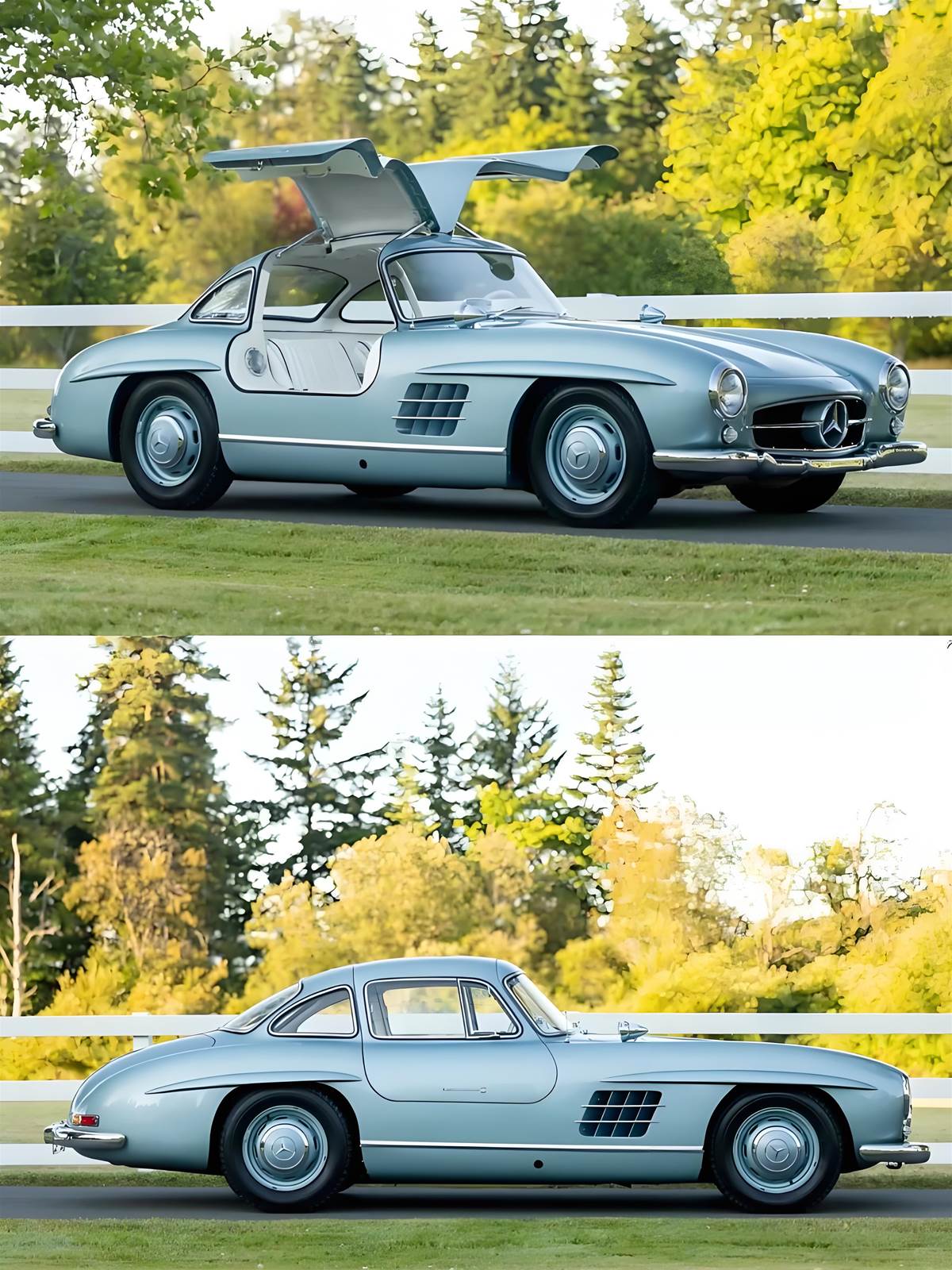 這款車誕生頗具戲劇性:當年美國經銷商 Maximilian Hoffman 向奔馳提議打造高端跑車,工程團隊以賽車底盤為基礎,研發出創新的空間車架結構。這款車架僅重 50 公斤卻極具剛性,但側裙高度過高導致傳統車門無法安裝,工程師便想出上掀式「鷗翼門」解決方案,也催生了隱藏式門把的誕生。