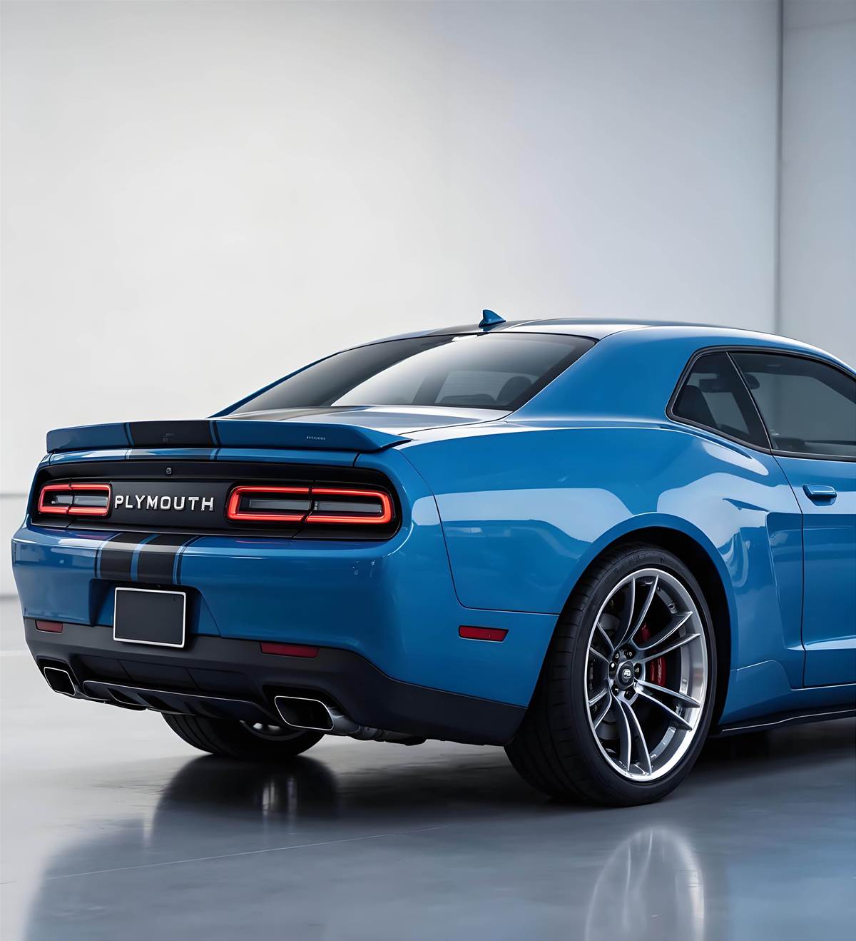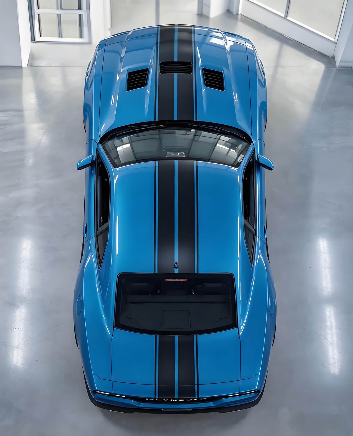 從曝光的渲染圖來看,新車並沒有丟掉初代車型的靈魂,依舊是標誌性的美式肌肉車姿態。長車頭、短車尾的經典比例,搭配隆起的引擎蓋和貫穿車身的凌厲腰線,力量感直接拉滿。寬大的輪拱配上大尺寸運動輪轂,氣場十足,一眼就能看出它不好惹。