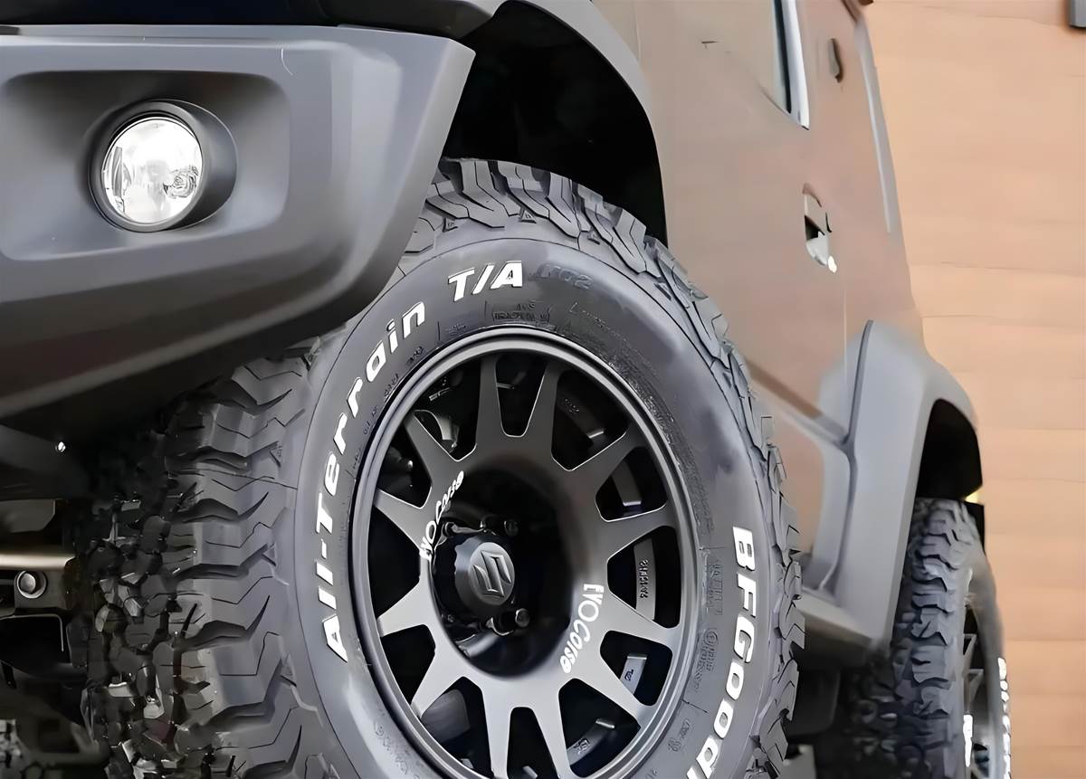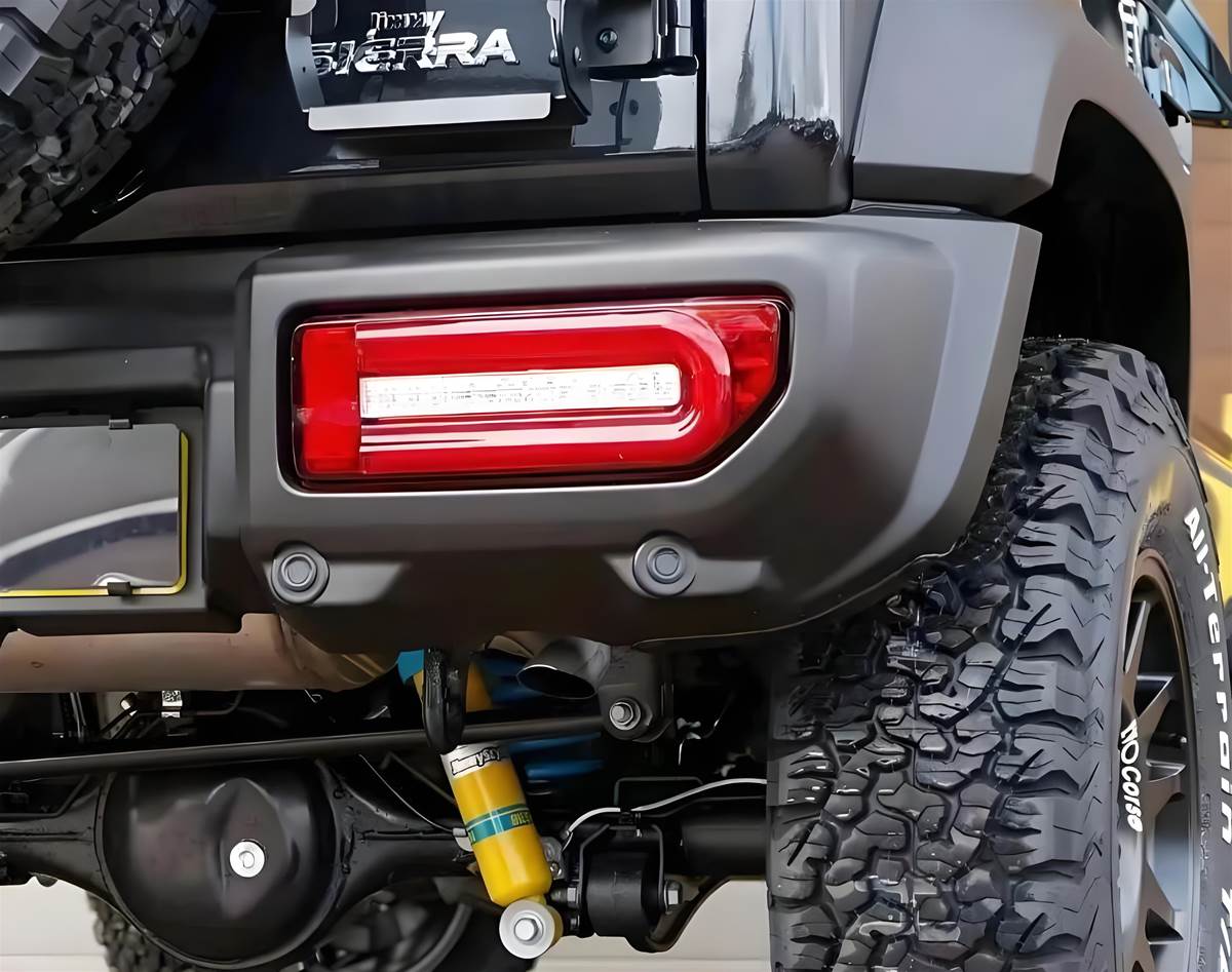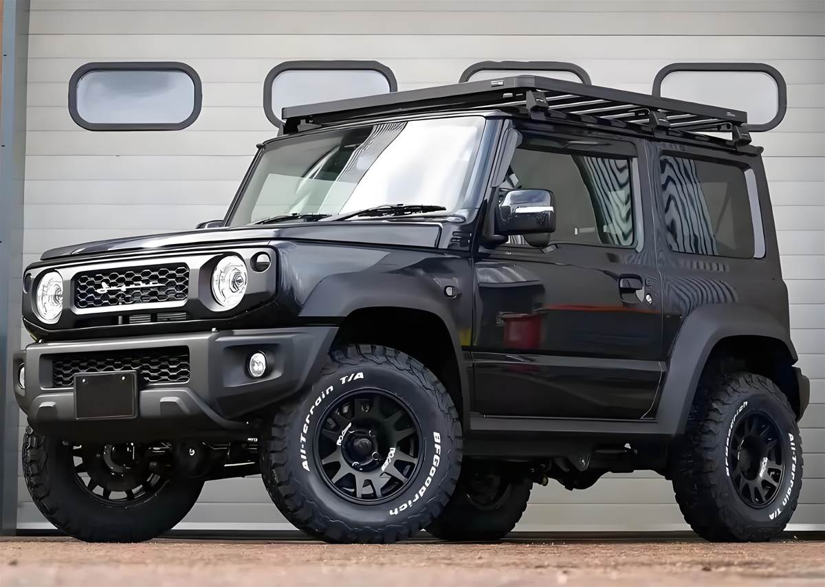粗壯的前保險桿讓車頭更顯厚實,既提升防護性能,也強化越野氣場。車身側面線條緊湊硬朗,黑色輪眉搭配大尺寸越野輪胎,將野性風格拉滿;輪轂也採黑色塗裝,與車身融為一體。不論在市區街頭或荒野山路,吉姆尼「黑武士」都像頭隨時待命的黑色猛獸。