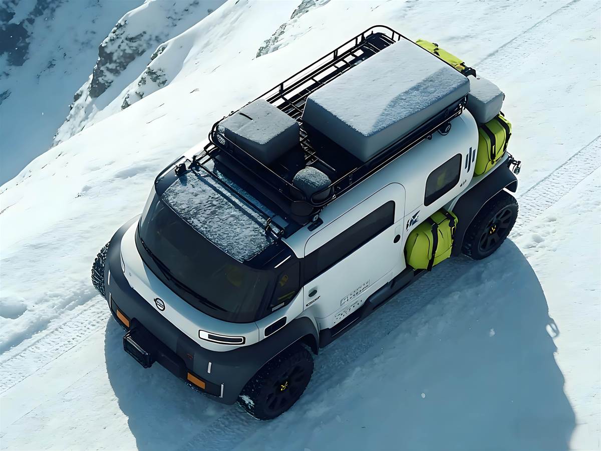 它採用「方盒機甲」造型,霧面白黑雙色車身搭配高質感細節,視覺上既有硬派越野的張力,又帶著未來科技感;原廠配備的頂置行李架與側掛裝備包,直接省去後續改裝的麻煩,完全踩中露營族群的需求。