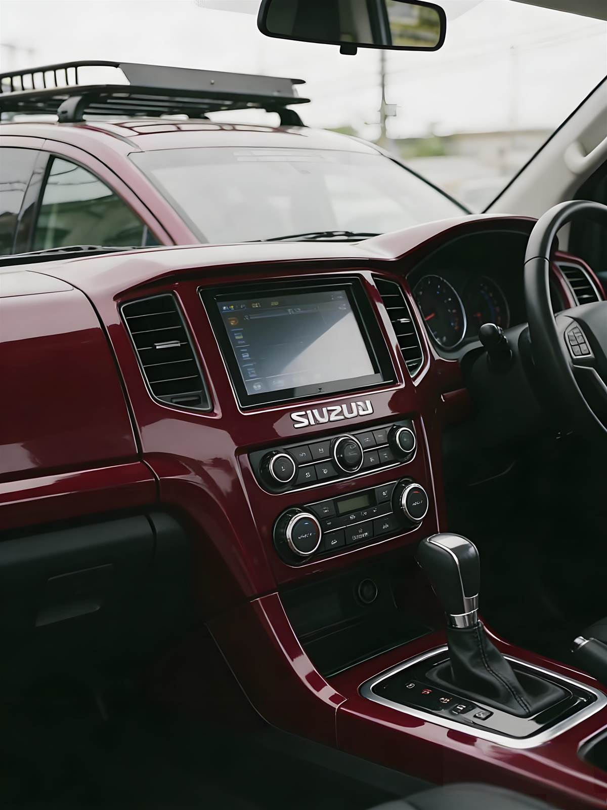 尾部的改裝更是亮點滿滿:原廠車標替換為五十鈴經典的「雙柱」標識,搭配燻黑尾窗與豎式尾燈,層次感十足;後保險槓加裝了運動化擾流板,單出大尺寸排氣管從側邊躍出,視覺上就充滿了效能氣息。頂部的行李架不僅實用,更為這臺MPV增添了幾分跨界風格,細節之處可見改裝者的用心。