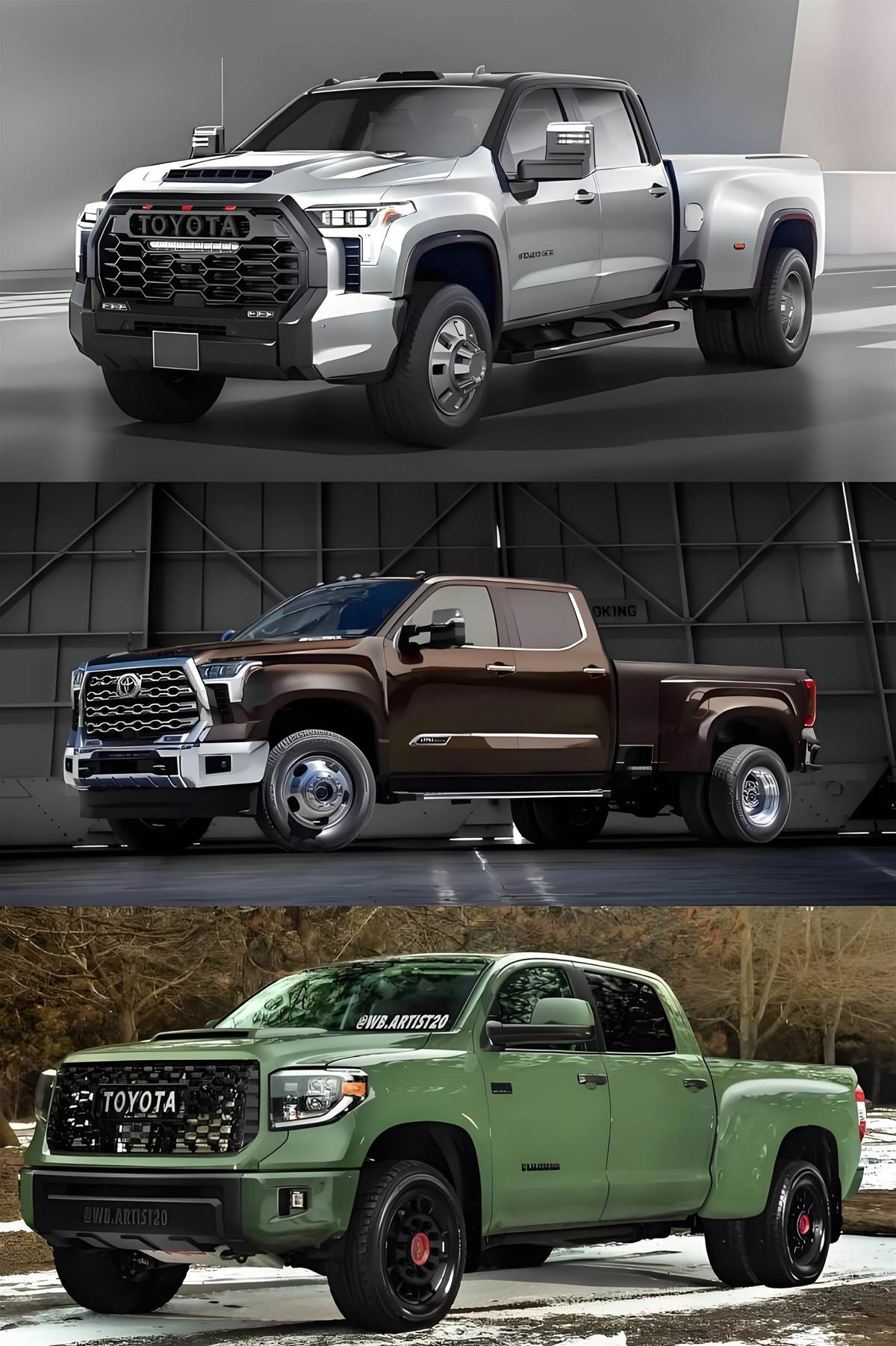 參考國外博主的渲染作品,三款設計各有亮點:INS 博主 WB.artist20 的第二代坦途 TRD Dually 版,將 2019 年改款後的 TRD Pro 格柵、燈組等比放大,後視鏡直接拉長,後鬥輪眉設計誇張如「腫起的大包」,雖忽略加油口細節,但視覺衝擊力十足;油管 AutoYa 頻道的 2024 款坦途 1794 HD 版,造型更趨自然,後視鏡連線處設計巧思頗多,還還原了加油孔細節,並加入美系長鬥皮卡常見的側階 —— 這類側踏板並非創新,豐田曾在 2003 年款第一代坦途半排駕駛室車型上搭載,如今在現代美系皮卡中也相當普及,通常車鬥前後都有配備,遺憾的是,即便 64 比例的現代皮卡模型,也鮮少還原這一細節;而油管 Digimods Design 頻道的 2026 款坦途 HD 版想象圖,渲染精度最高,不僅輪廓協調,細節處理也更到位,堪稱最貼近筆者心中理想的樣貌。