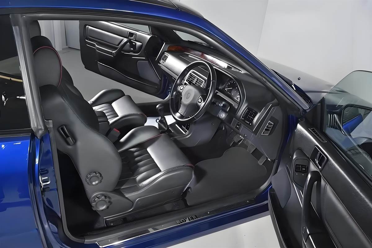 外觀設計堪稱當年的「潮流先鋒」!基于與本田合作的 R8 平臺打造,車身卻是羅孚純血設計:全新單體側板、深前擾流板與大型進氣格柵,搭配標誌性的 T 型可拆卸玻璃車頂系統 —— 雙片玻璃面板可獨立傾斜或完全拆除,連 T 型橫樑都能收進行李廂專用保護套,鈦塗層半反射玻璃還能將太陽熱傳導率壓至 6%,實用又酷炫。車身尺碼來到 4270×1710×1370mm,輕盈的身姿搭配流線型腰線,既保留英式優雅,又暗藏效能氣息,即便放到現在也毫不過時。