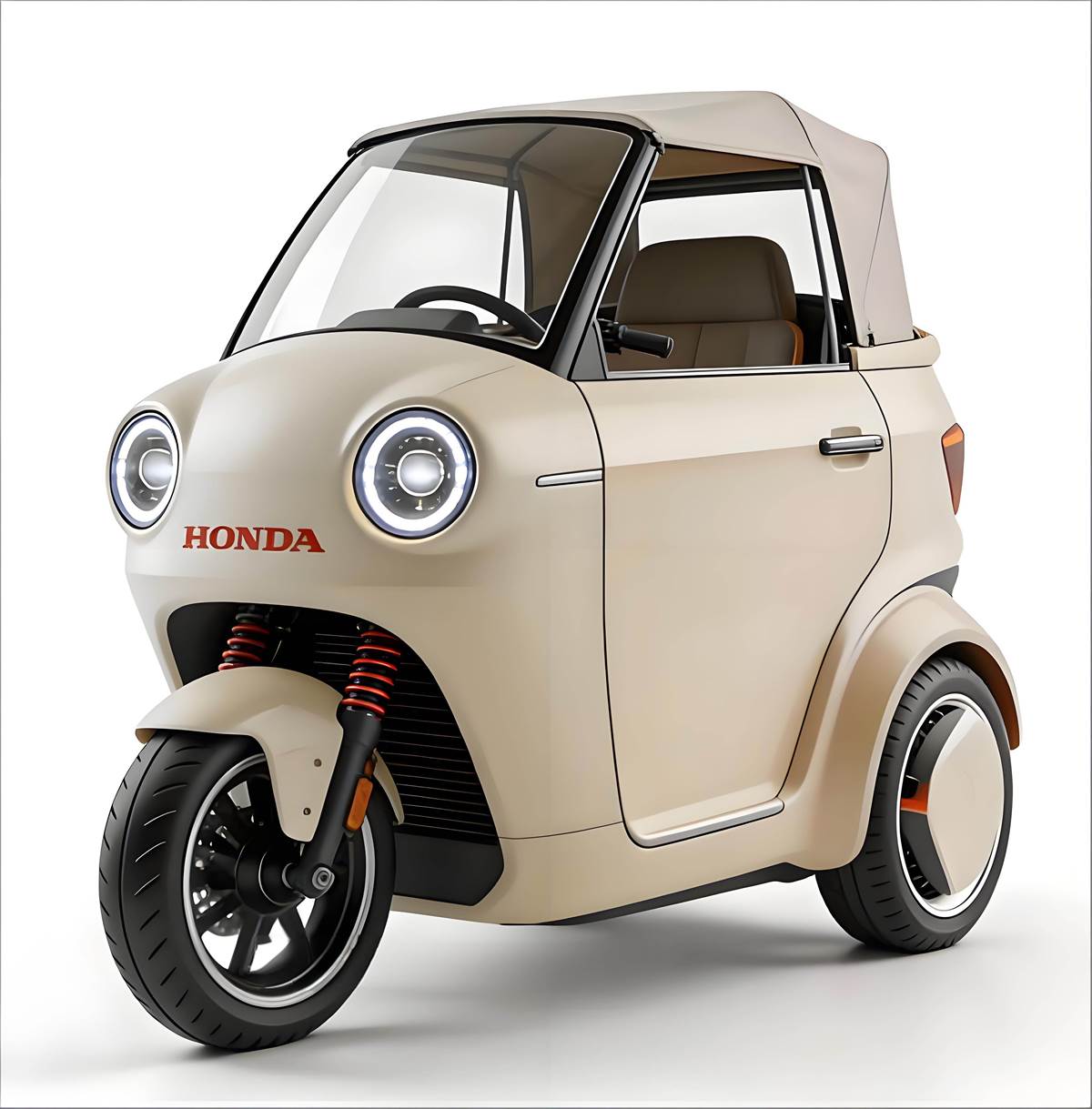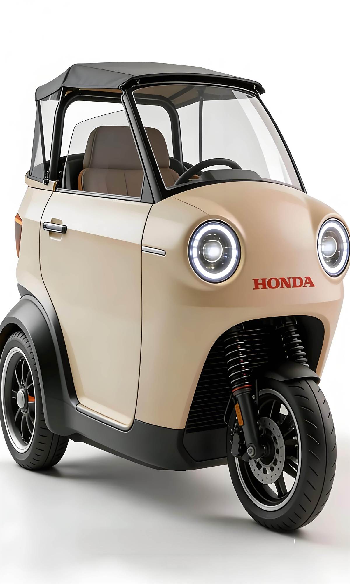 外觀:復古萌趣,本田式設計美學拉滿誰能拒絕一臺顏值與實用並存的本田微型三輪?奶杏色、軍綠色、純黑色多款配色可選,圓滾滾的復古大燈 + 軟頂敞篷設計,把日系 K-Car 的可愛感和本田的運動基因完美融合。小巧車身搭配單前舵、雙後輪佈局,既保留了本田標誌性的設計語言,又玩出了微型代步車的新花樣,不管是日常通勤還是週末兜風,開在路上回頭率直接拉滿。