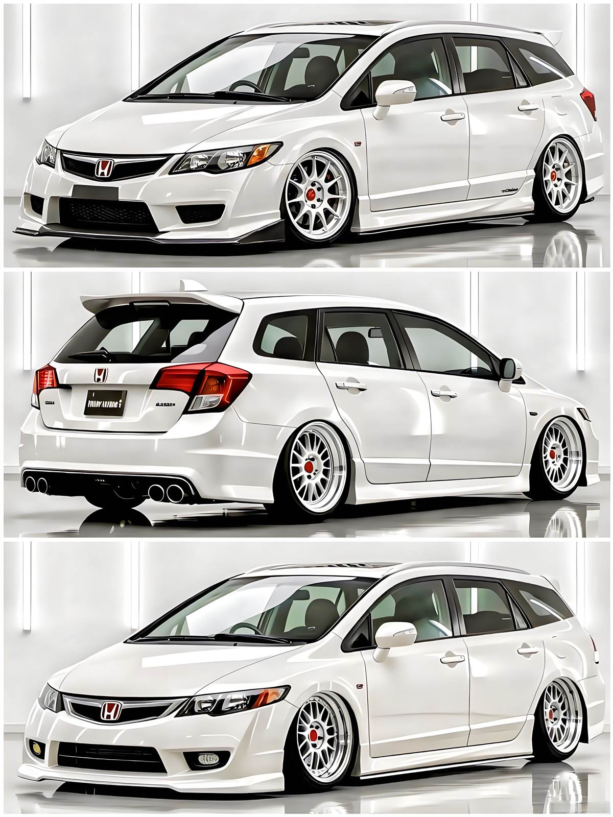 誰能拒絕一臺把「家用瓦罐」玩成「賽道猛獸」的本田思域旅行版啊?看到這臺白到發光的喜美旅行版低趴改裝車,我直接按捺不住想衝去改裝廠的手——這根本是把本田的「紅頭魂」和瓦罐的浪漫焊死在車身上了好嗎!