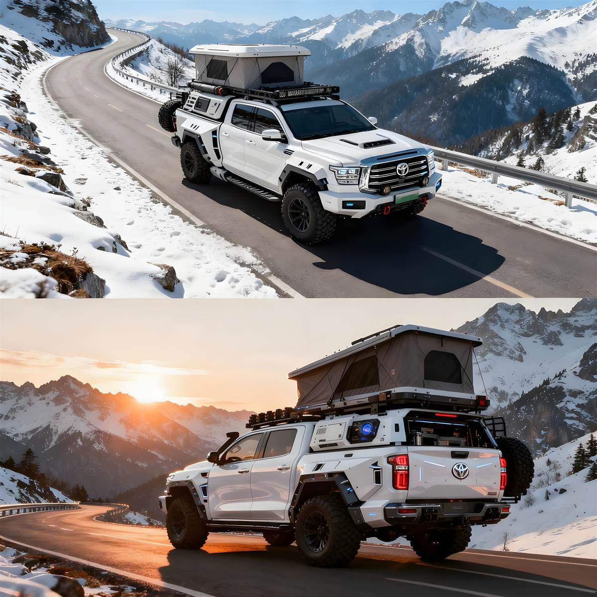 而這款豐田海拉克斯,在無數次野外露營中從未掉鏈子:在山區露營時遇到強陣雨,車頂賬的防水布料能擋住所有雨水,保證車廂裡的裝備絲毫未損;挑戰深山的未開發路線,四驅系統輕鬆應對碎石坡,車載GPS就算沒有手機訊號也能定位,讓我們順利找到合適的紮營點。