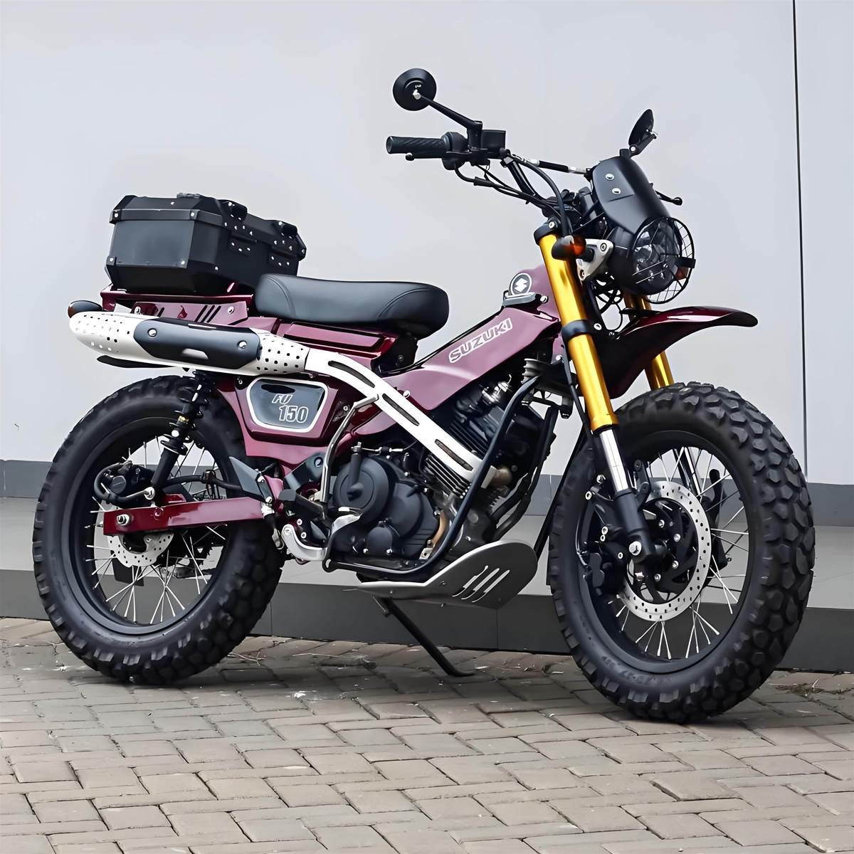 圖中是鈴木 Satria FU150 Trail,以本田CT幼獸系列為外型參考的改裝車Brilliant Motorcycles改裝團隊的鈴木Trail 150改裝車…… 設計靈感來自于20 世紀 60 年代初,本田 CT90(又名 Trail 90)將公路與越野的小排量跨界設計首次初現。