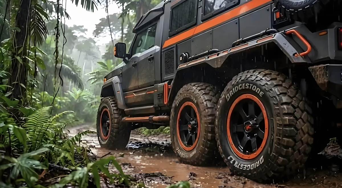 外觀擁有軍規級硬朗氣場,搭配四組高亮度 LED 頭燈,強化鋼製保險桿與脫鉉充滿戰鬥氣息。六具大型全地形胎搭配六輪驅動架構,徹底改寫越野能力的定義,無論懸崖、荒漠、惡地都能如履平地。