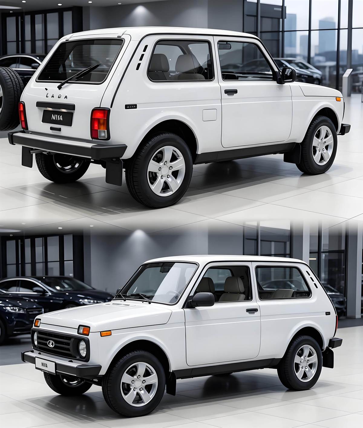 外觀:復古方盒子,每一處都為越野而生從這組渲染圖就能看出,拉達尼瓦的設計幾十年如一日,經典的方盒子造型、圓形大燈和短小車身,每一處細節都在為越野服務。三門短軸距讓它在狹窄林間也能靈活穿梭,高離地間隙和接近角,面對陡坡、亂石路時比很多大型 SUV 更從容。