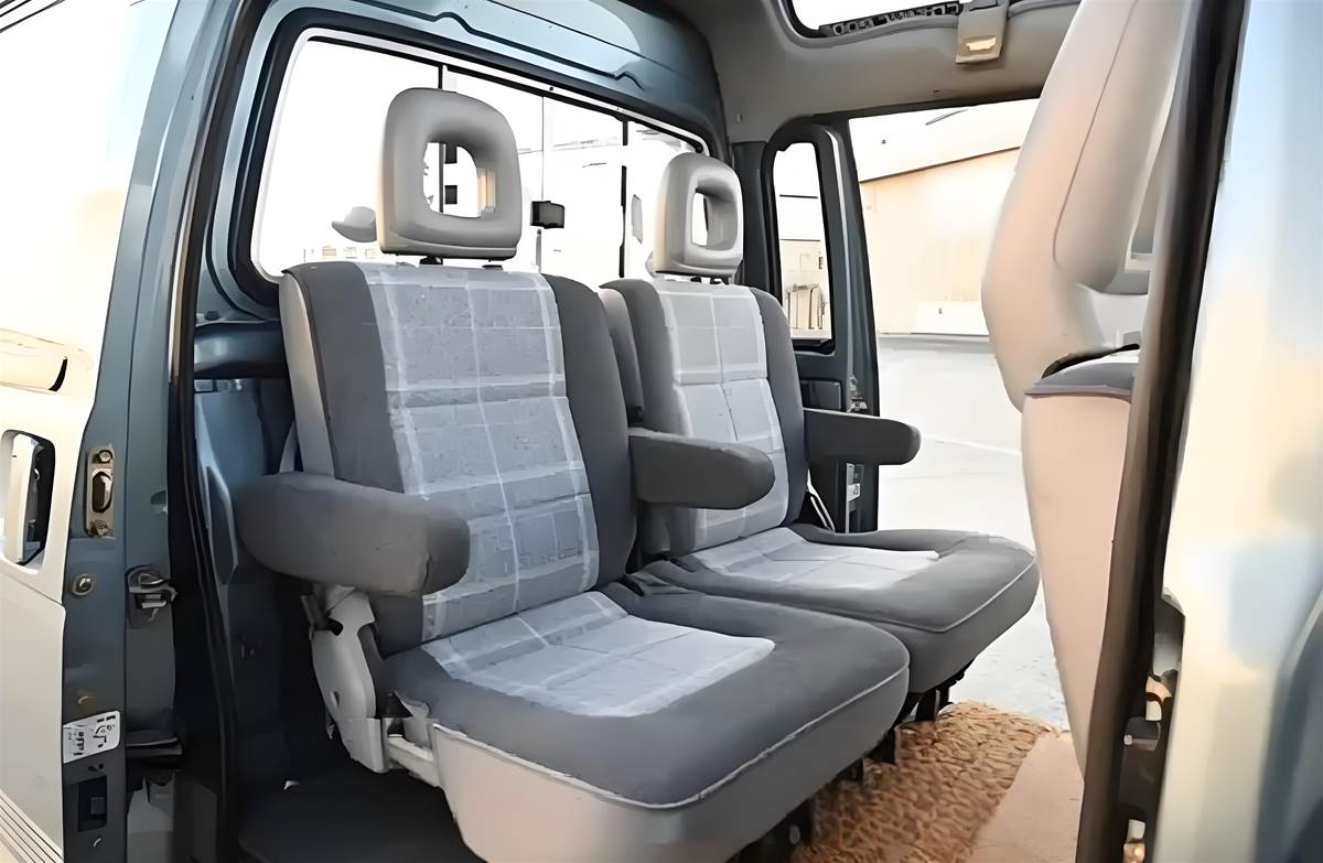 雙側滑門設計讓上下車超便利,車頂三個可開啟天窗,堪稱當年微型車的「全景配置」,搭配卡帶播放機、收音機、可伸縮遮陽簾與車載空調,雙色絨布內飾更添溫潤質感。